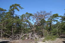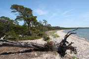 Beskrivning: Bödakusten, östra. Tallar på strand. Ekopark Böda.