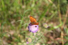 Beskrivning: Pärlemorfjäril på vädd, Ekopark Böda