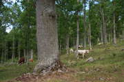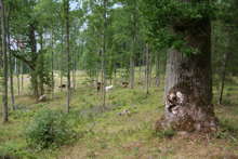 Beskrivning: Jätteek i beteshage. Kor, kreatur, Ekopark Omberg.