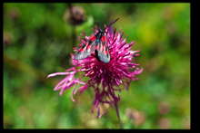 Beskrivning: Hagtornsfjäril och bastardsvärmare på sommaräng. Ekopark Böda.