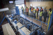 Beskrivning: Sågverksdag, sågverk, anordnades på Setras sågverksanläggning i Skinnskatteberg, virkesköparna i Norra Bergslagen bjöd in till en heldag, virkesköpararrangemang, virkesköpare, process, produkt, produktion