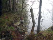 Beskrivning: Dämningsanordning, Ekopark Öjesjöbrännan, liv efter brand, växtlighet, liv, pånyttfödelse
