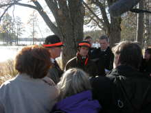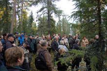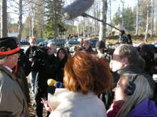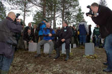 Beskrivning: Kungen och de 18 älgarna, Den 22 oktober arrangerade Sveaskog traditionsenligt den Kungliga jakten i Kloten i Bergslagen, Kungen och Carl Philip omringad av reportrar
