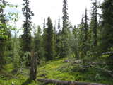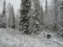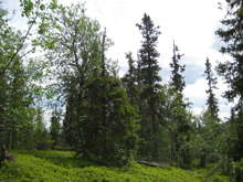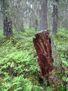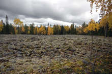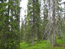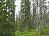 Beskrivning: Bilder från helikopterinventeringen i Västerbotten efter stormen Hilde som inträffade den 16 november 2013, Brutna stammar, stormfällning, stormskador, landskap