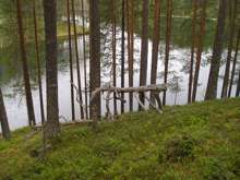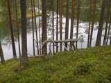Beskrivning: Hängbro, natur, plankor, brädor