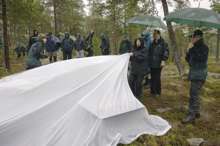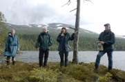 Beskrivning: Kungen och de 18 älgarna, Den 22 oktober arrangerade Sveaskog traditionsenligt den Kungliga jakten i Kloten i Bergslagen, kungen omringad av reportrar