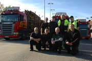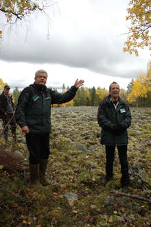 Beskrivning: Lennart Nyström, Lars-Olof Johansson och Bo Axelsson kör skördare. Skotaren körs av entreprenören Stefan Nyström.