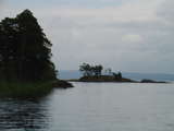 Beskrivning: Kanoter, kanottur, spegling, klart vatten, sjö