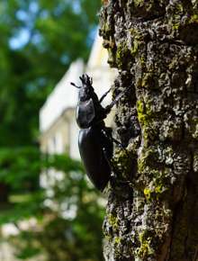 Beskrivning: Ekoxehona, Ekoxe, Böda ekopark, insekter, insekt, svart insekt, träd, trädstam, klättra, sommar