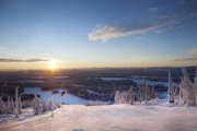 Beskrivning: Utsikt från toppen av backen, skidliftar, slalom
