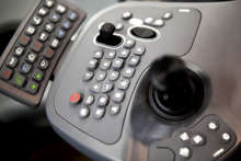 Beskrivning: Isakssons terrängtransport i Överkalix. Styrpanel, manöverpanel, detalj från styrhytten, i en John Deere 1170 E.