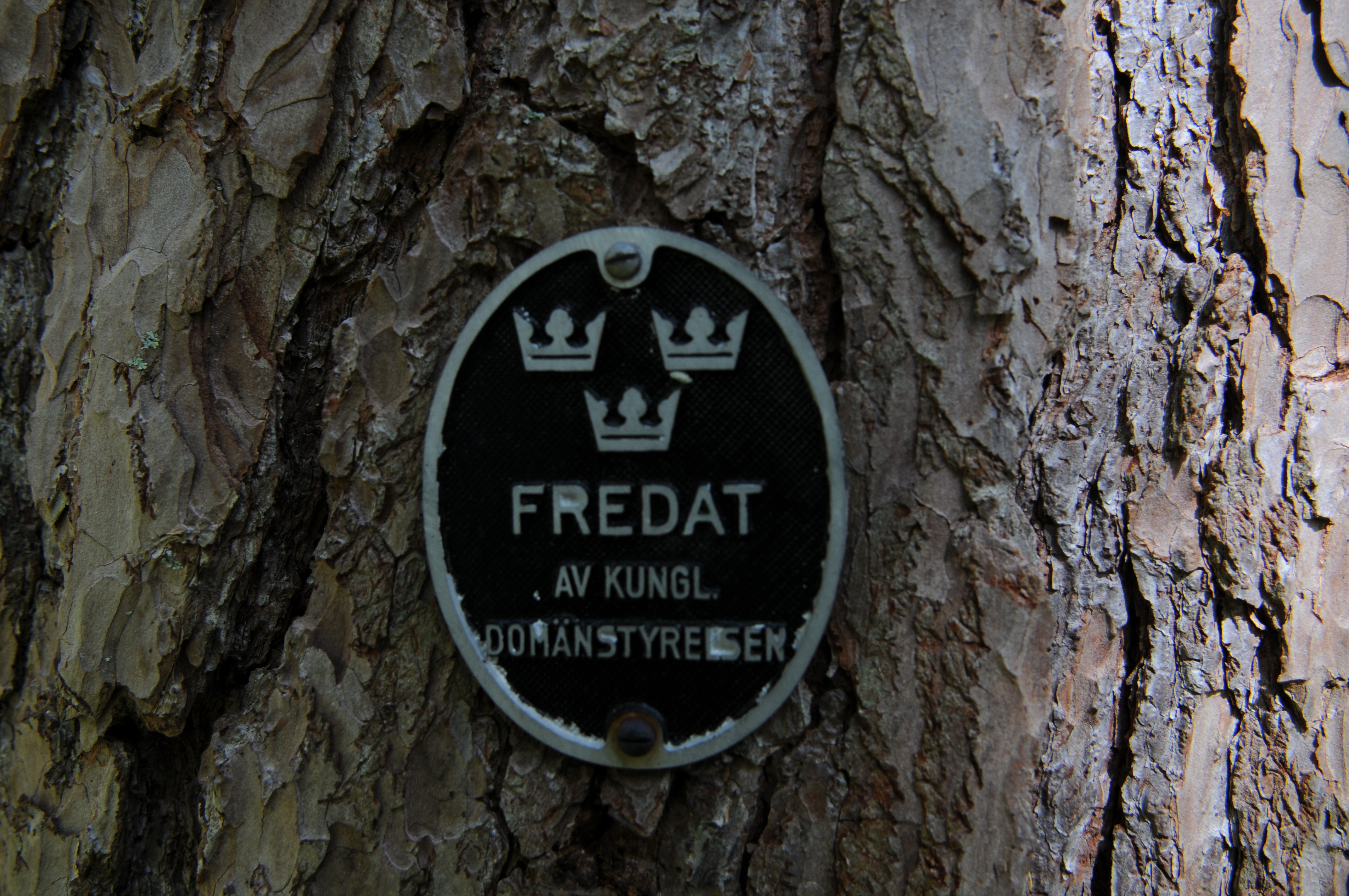 - Beskrivning: Skylt, Fredat av kungliga domänstyrelsen