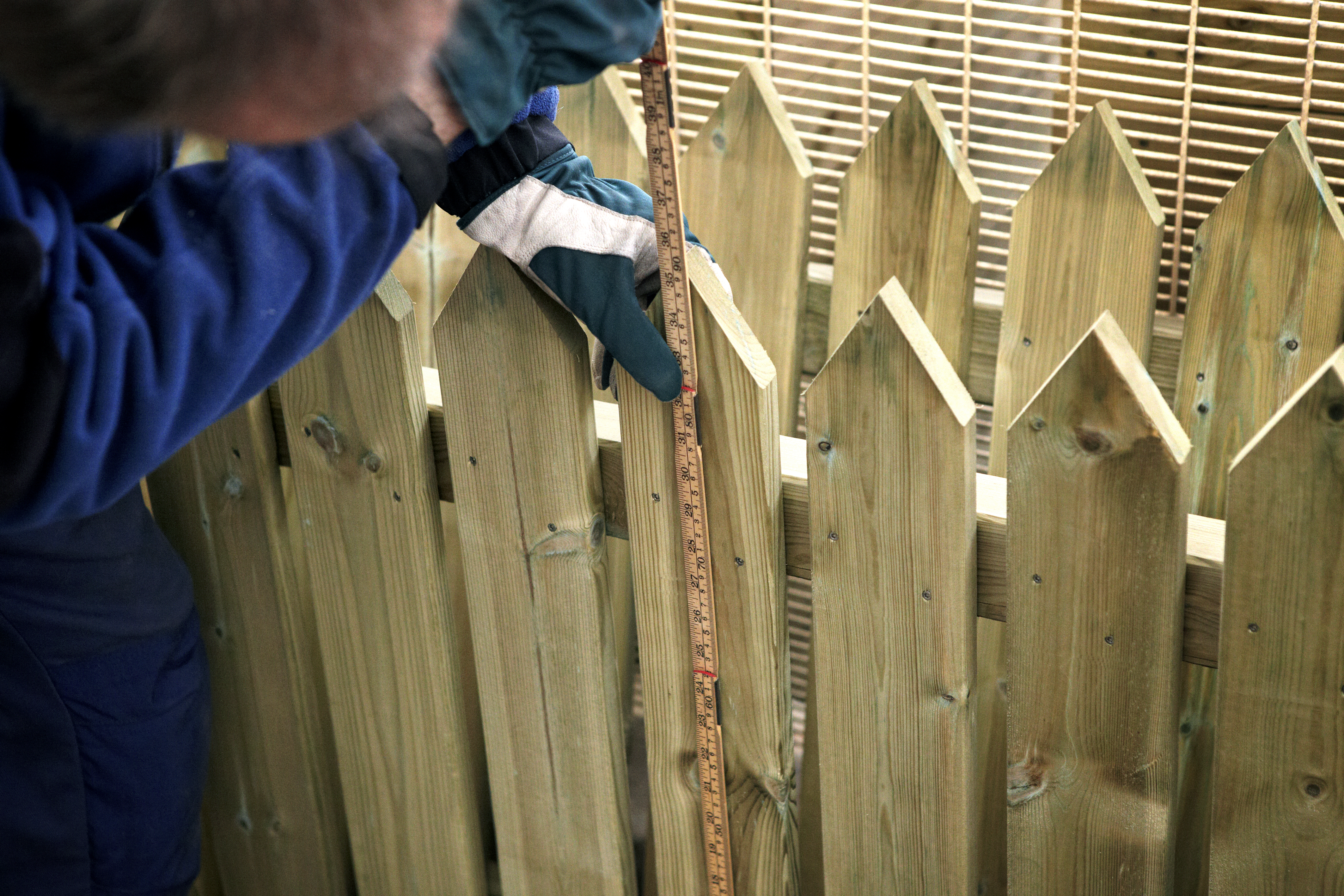 - Beskrivning: Staket, spjälor, virke, brädor. Fredells byggvaruhus, brädgård.