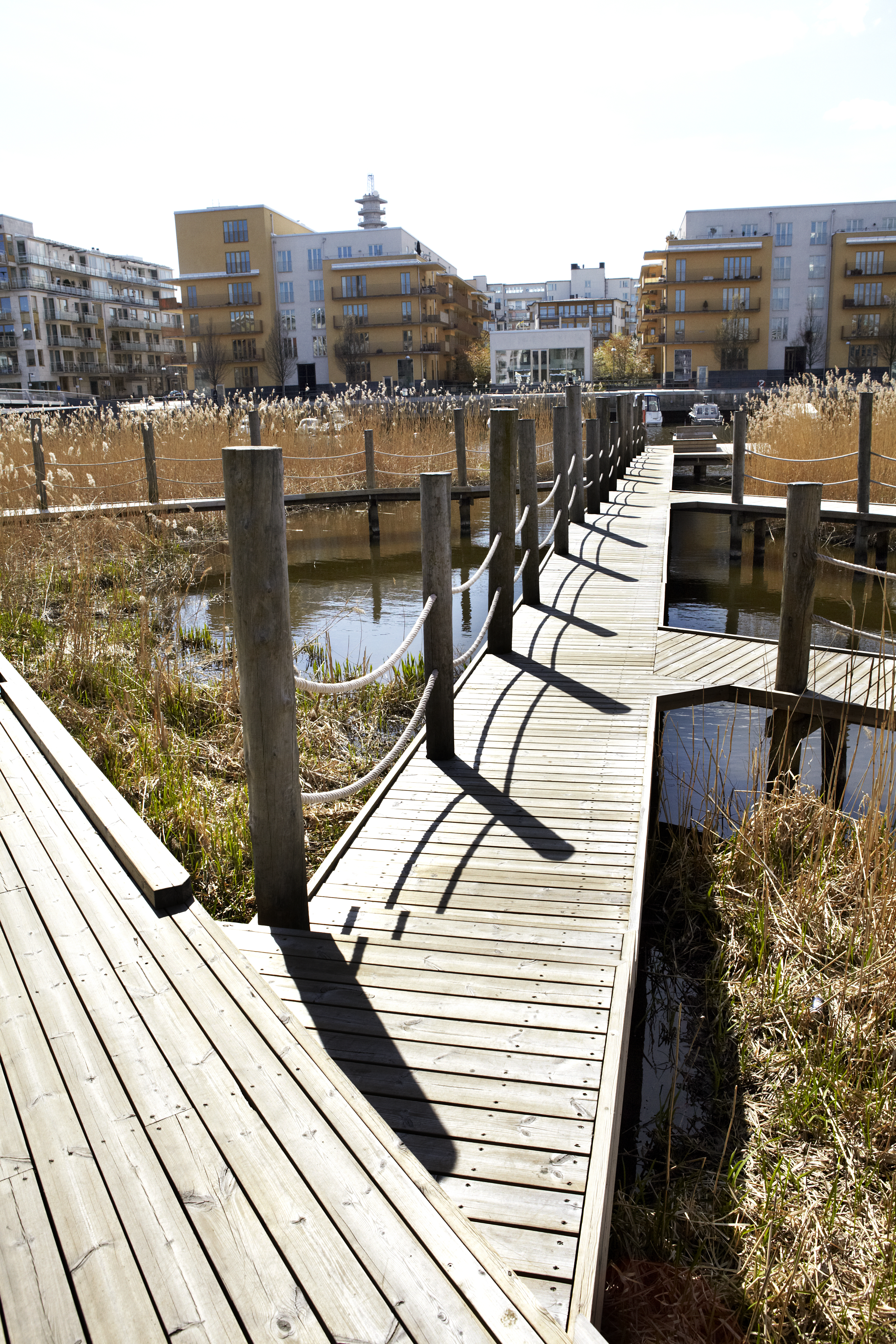 - Beskrivning: Brygga, gångbro, spång. Nybyggnation, Hammarby Sjöstad.