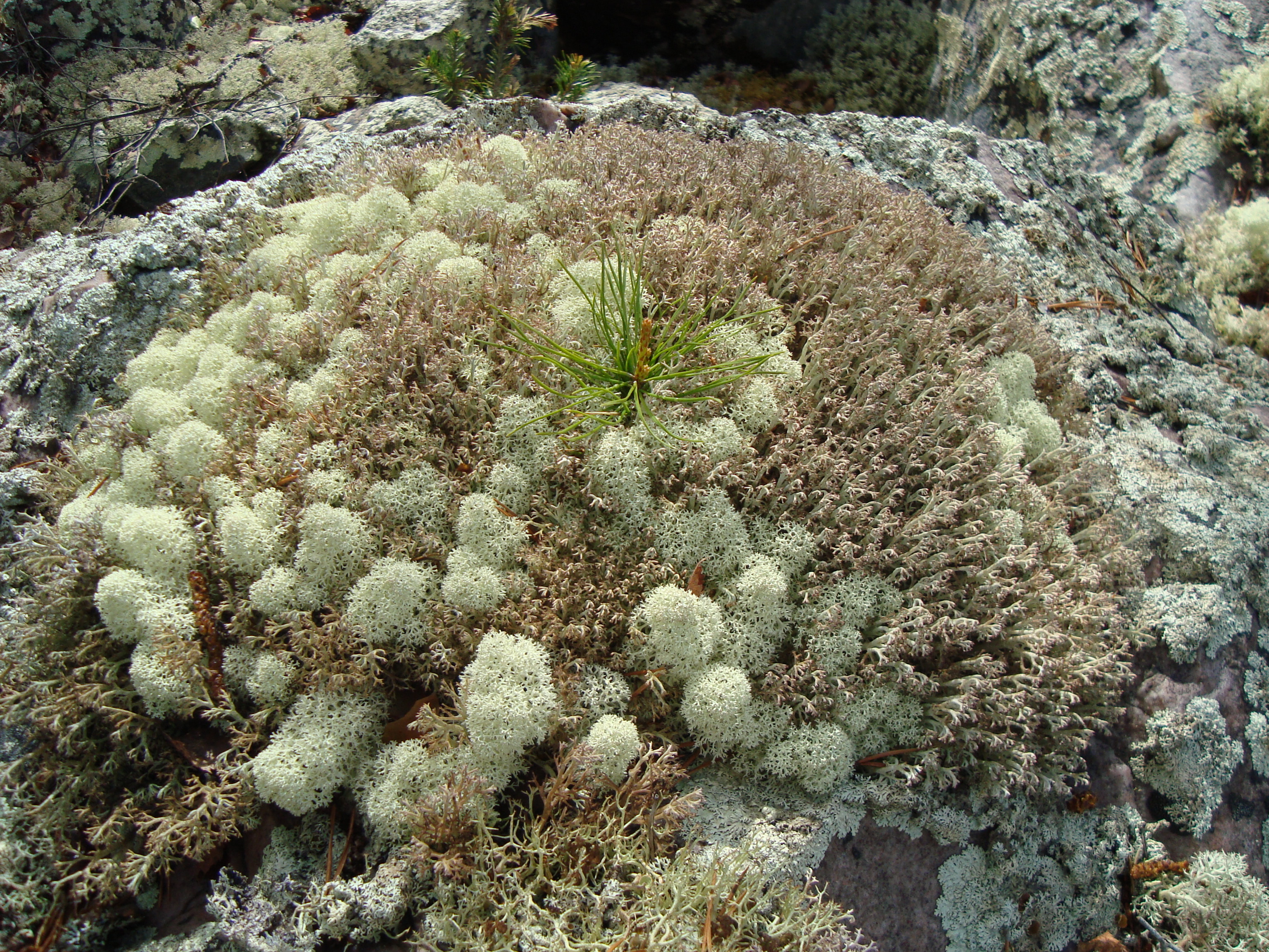 - Beskrivning: Cladonia spp. Troligen fönsterlav, grå renlav och gulvit renlav mfl. I mitten en liten tall. Ekopark Tranuberget