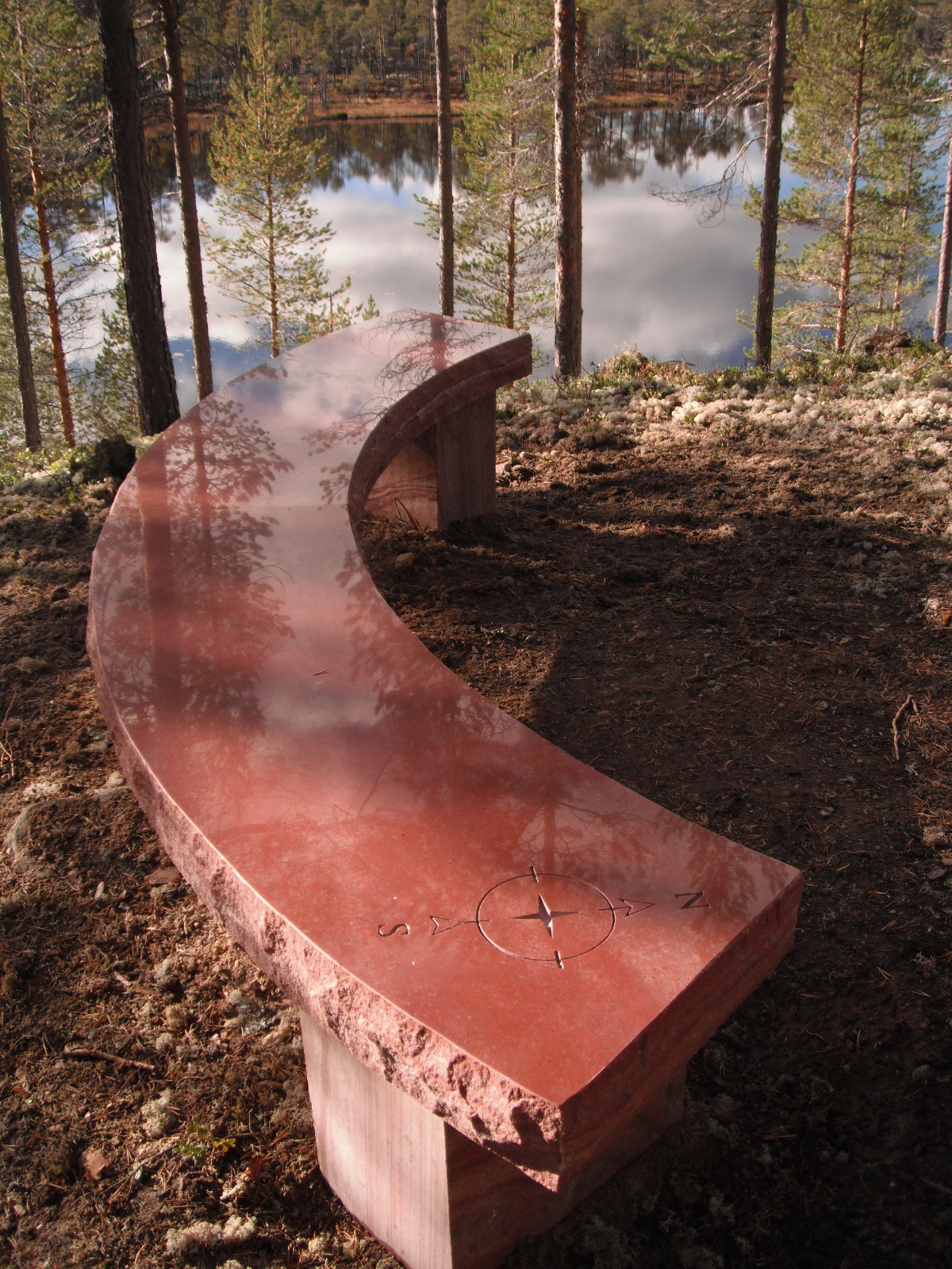 - Beskrivning: Stenbänken i vacker röd dalasandsten. Invigning av Ekopark Tranuberget