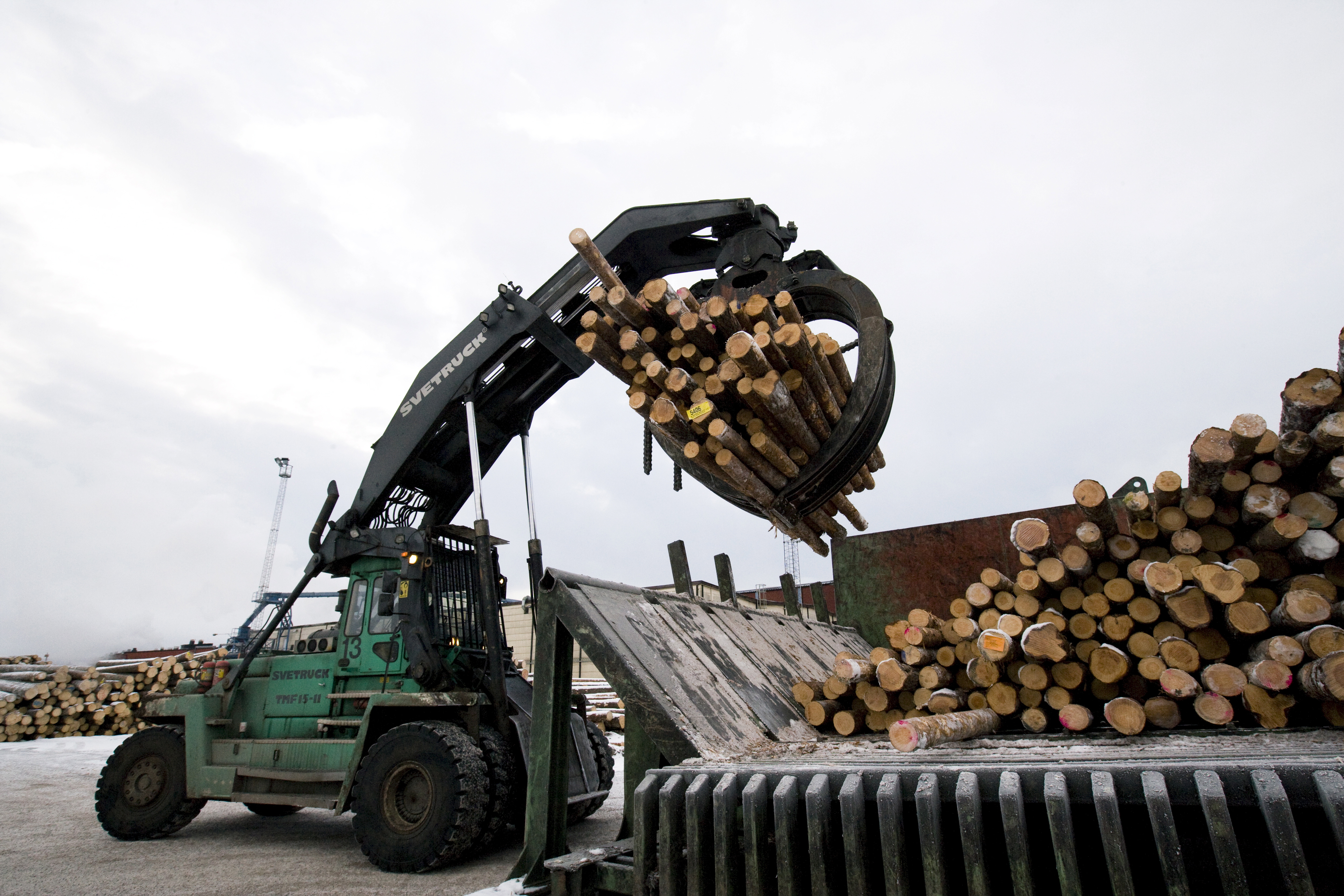 - Beskrivning: Bergkvist-Insjön, sågverksföretag. Lastning av virke. Traktor, truck.