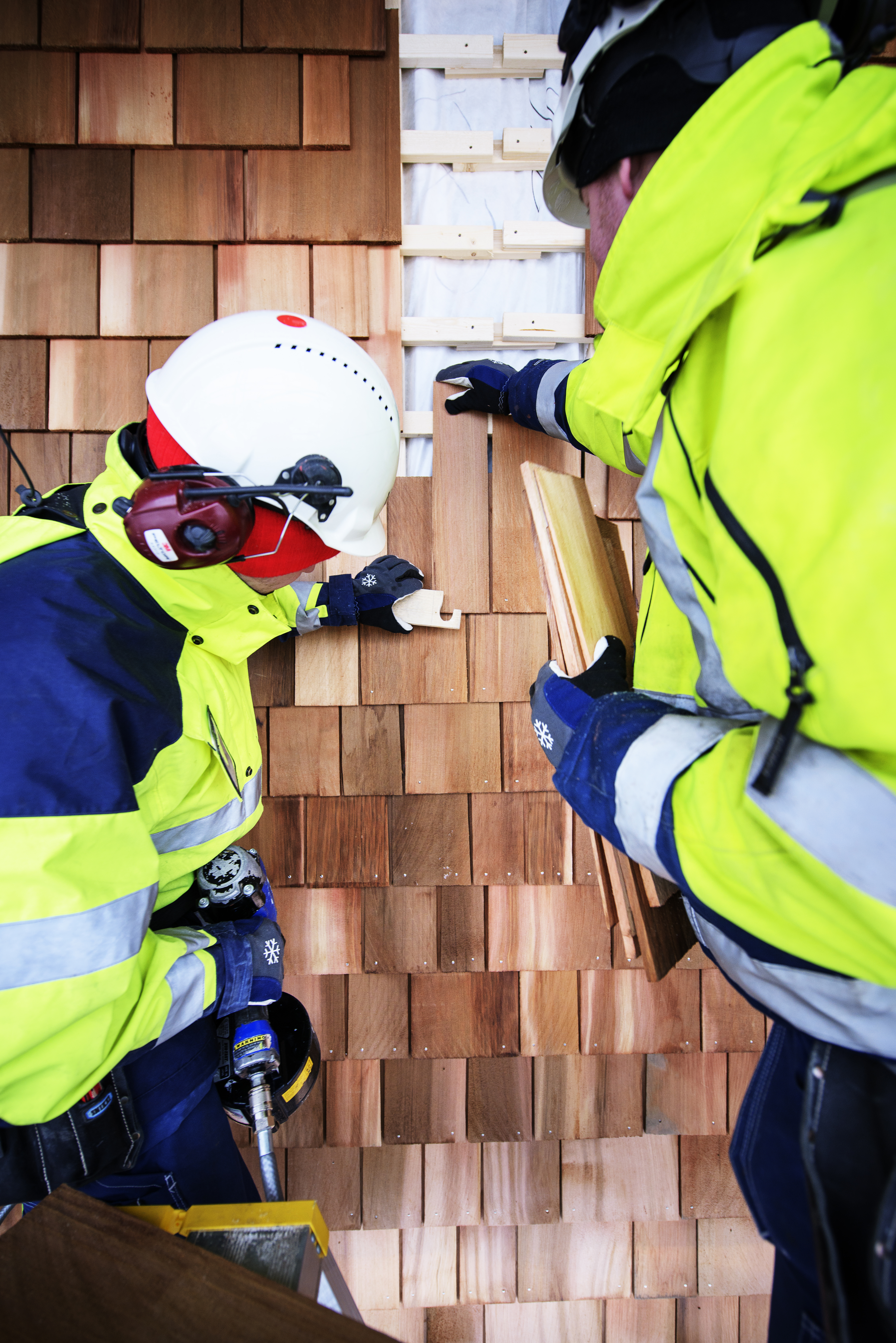 - Beskrivning: Folkhems sexvåningshus i trä som byggs i Strandparken i Sundbyberg utanför Stockholm. Fasaden i obehandlat cederträ, underhållsfri och klimatanpassad.