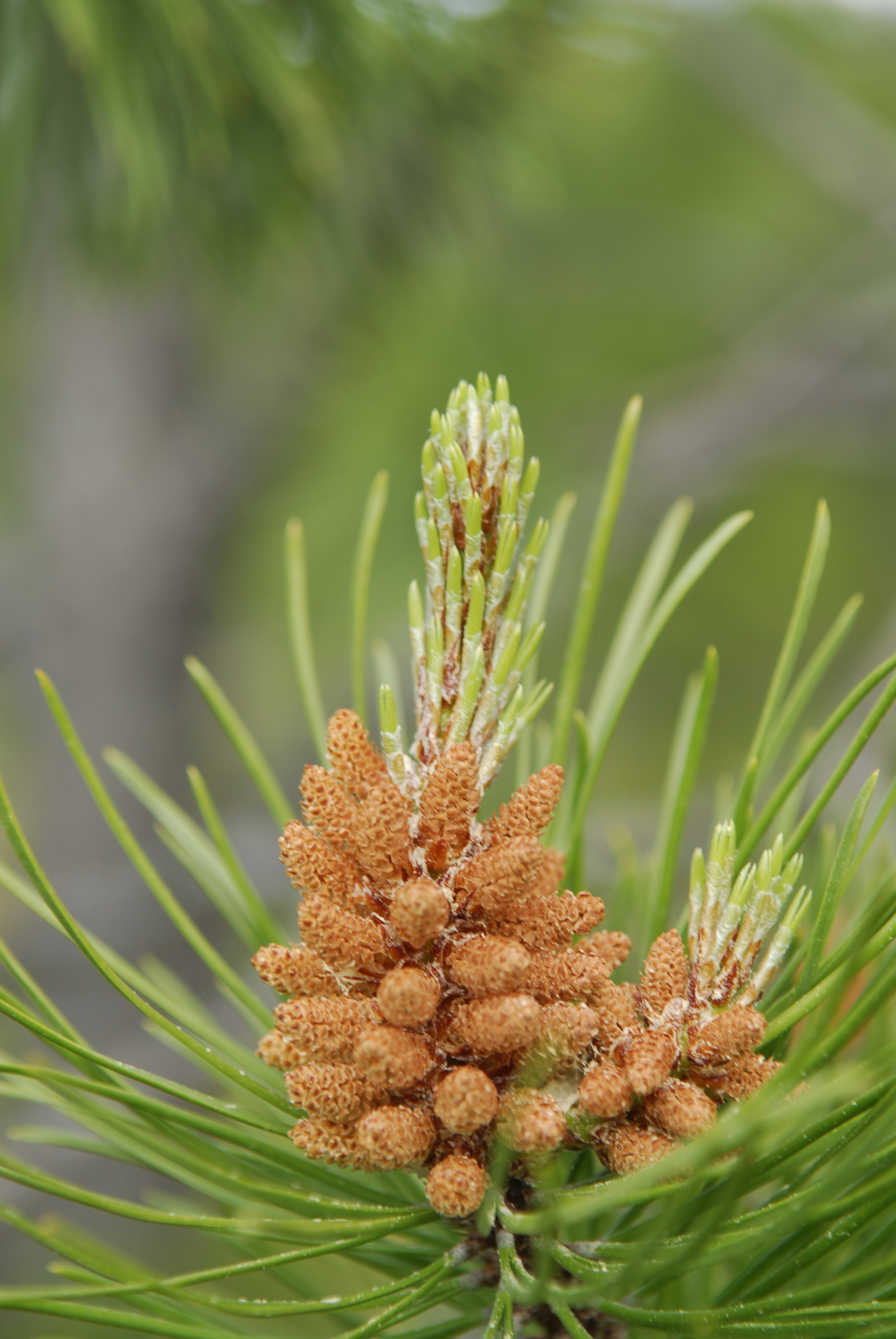 - Beskrivning: Tall som blommar. Kotte på väg. Contorta. Ekopark Dubblabergen.