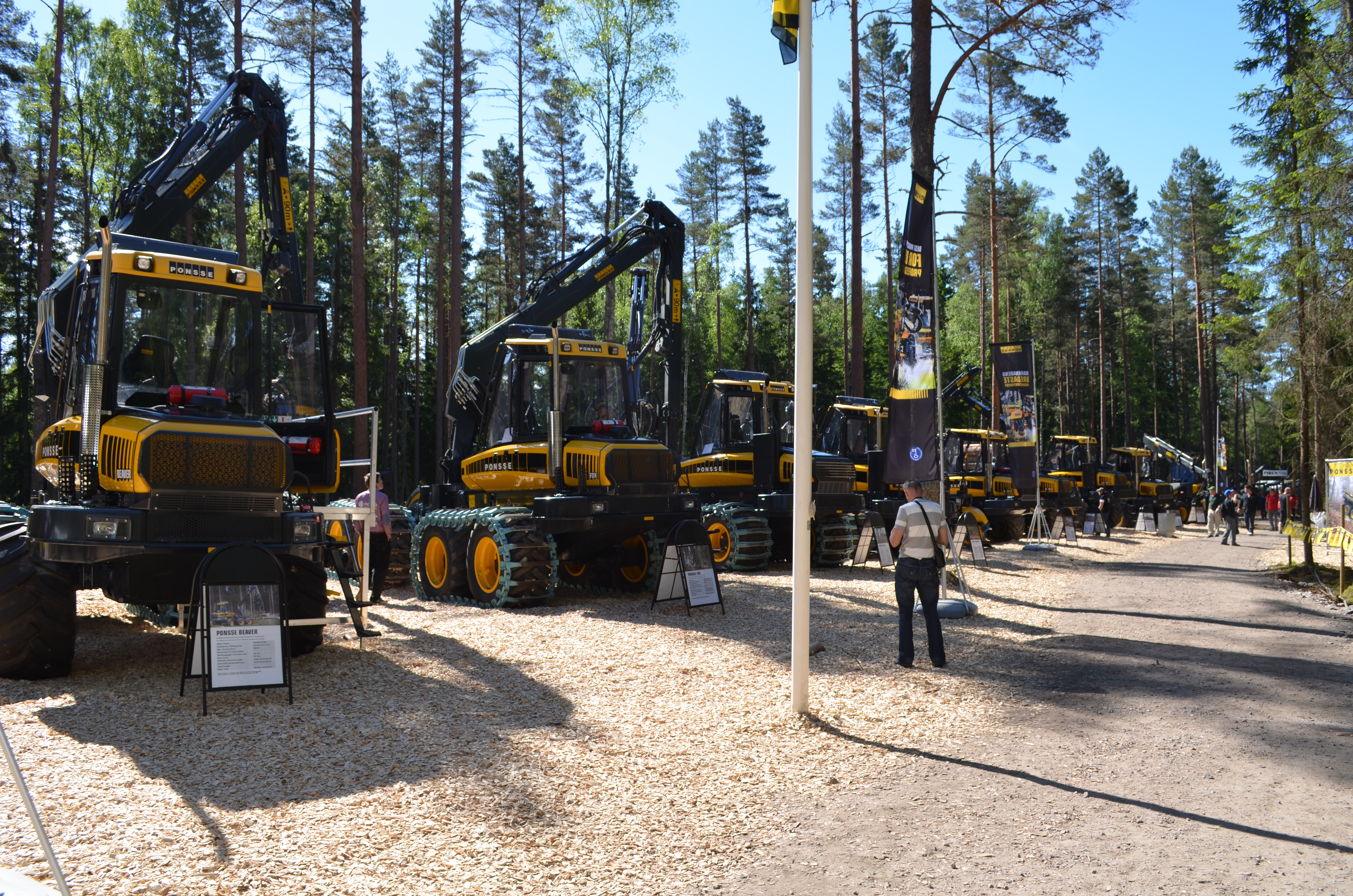 - Beskrivning: Del av Elmia mässan, monter, Ponsse, skogsmaskin, fordon, traktor,