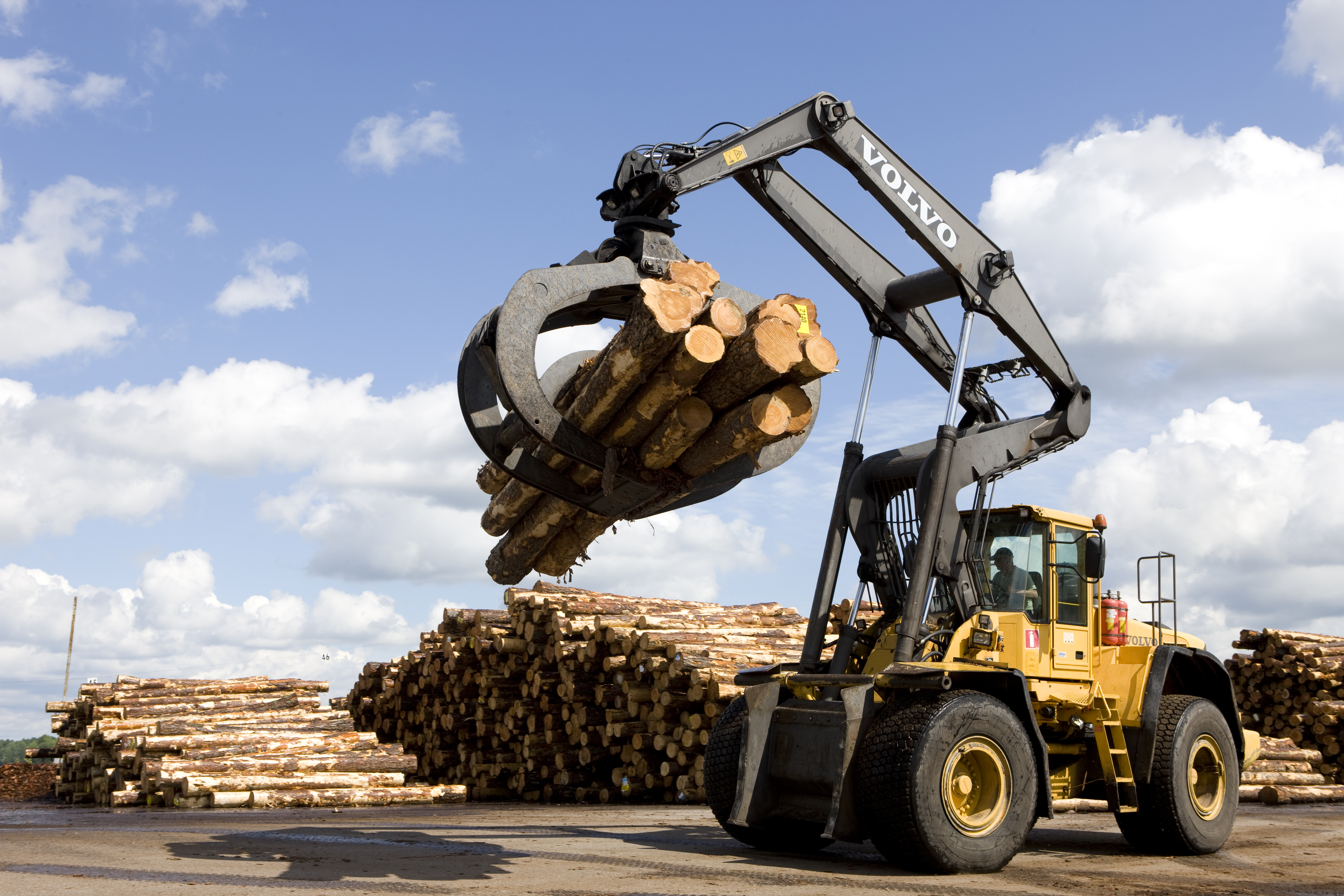 - Beskrivning: Setra, sågverk, traktor, maskin, gripklo, timmer, virke, trä, produktion