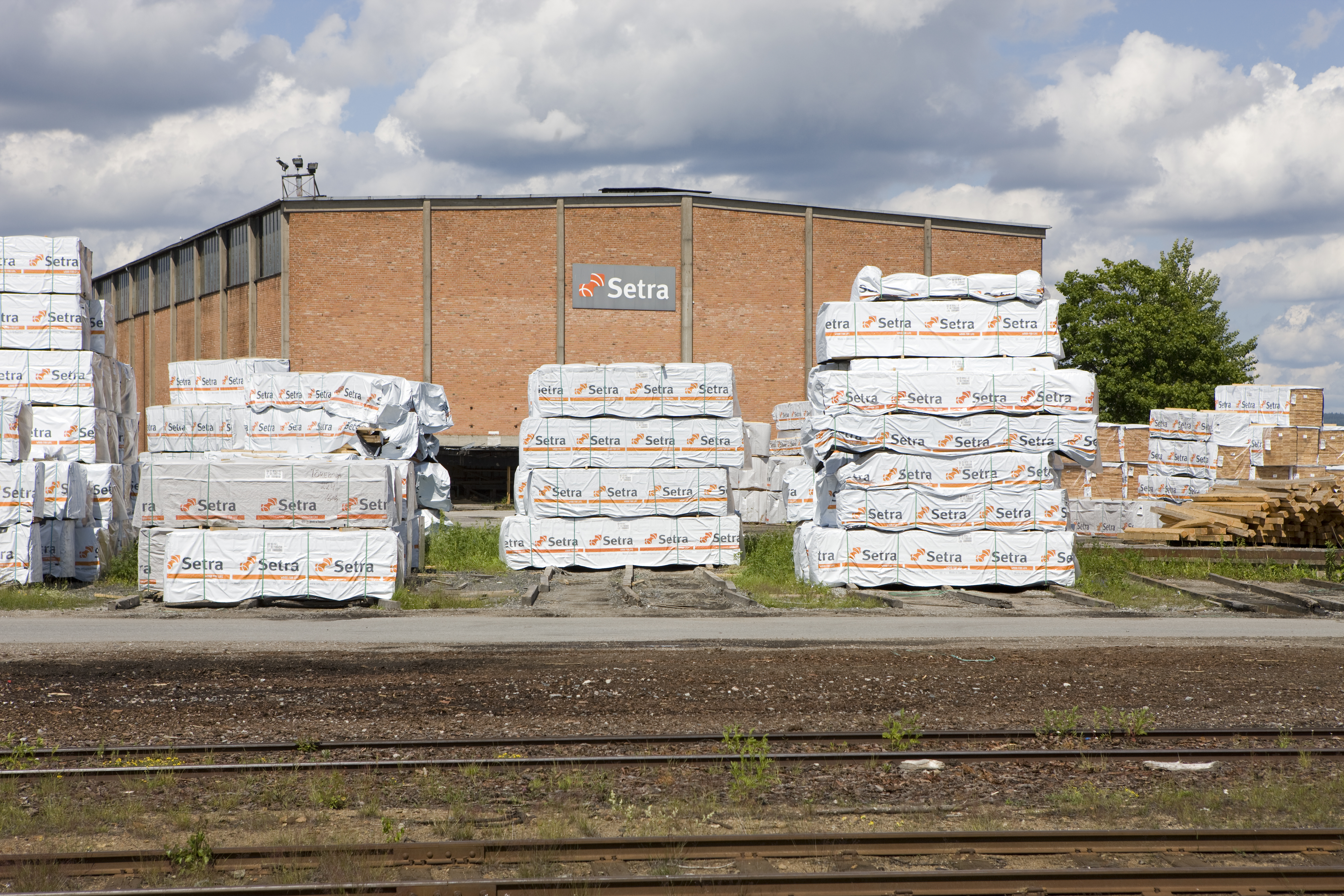 - Beskrivning: produktion, Setra, Wood for life, sågverk, produktion, leverans, förpackat, virke, plankor, produkt, övertäckning, virkesterminal