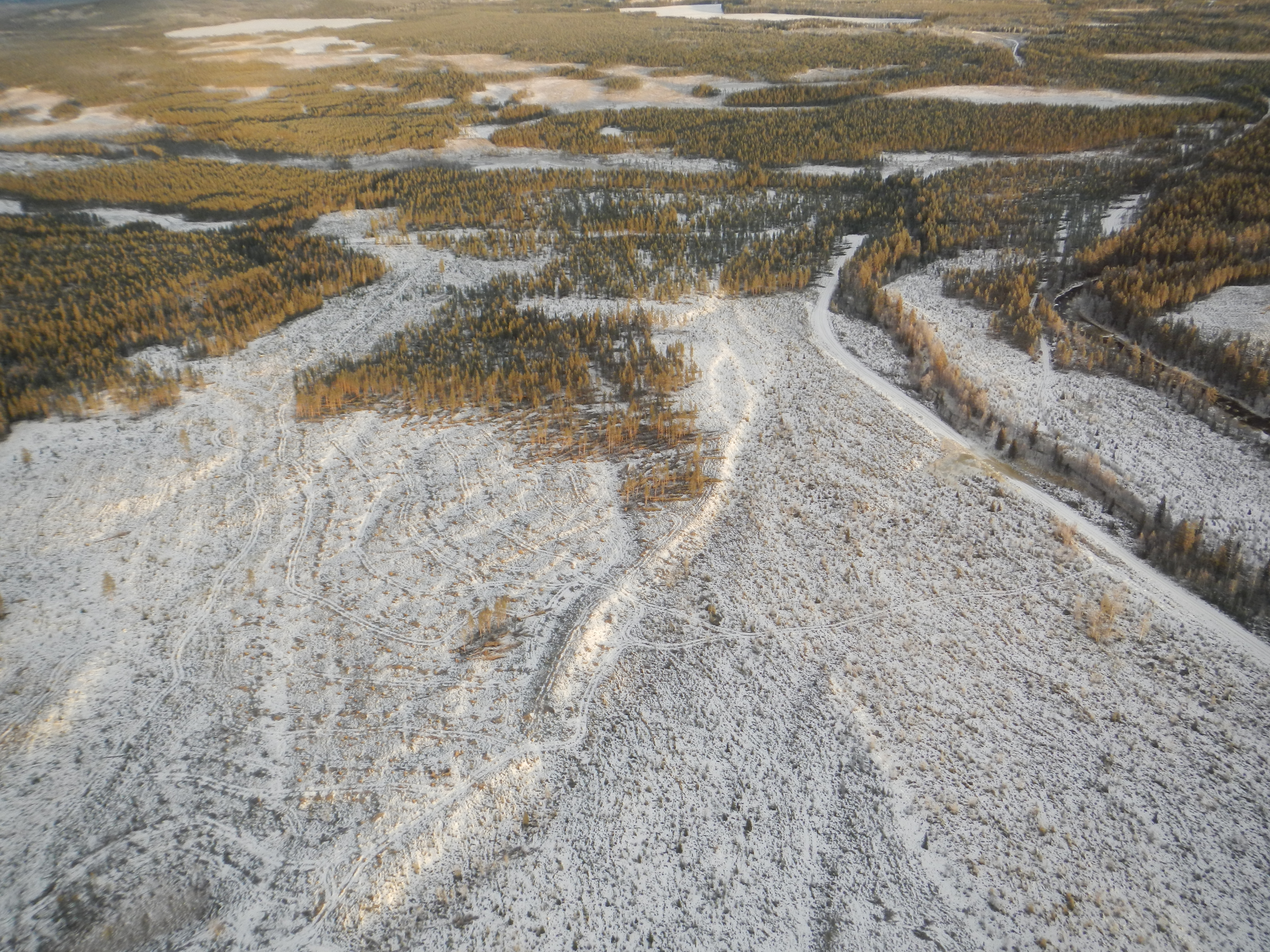 - Beskrivning: Bilder från helikopterinventeringen i Västerbotten efter stormen Hilde som inträffade den 16 november 2013, Brutna stammar, stormfällning, stormskador, landskap