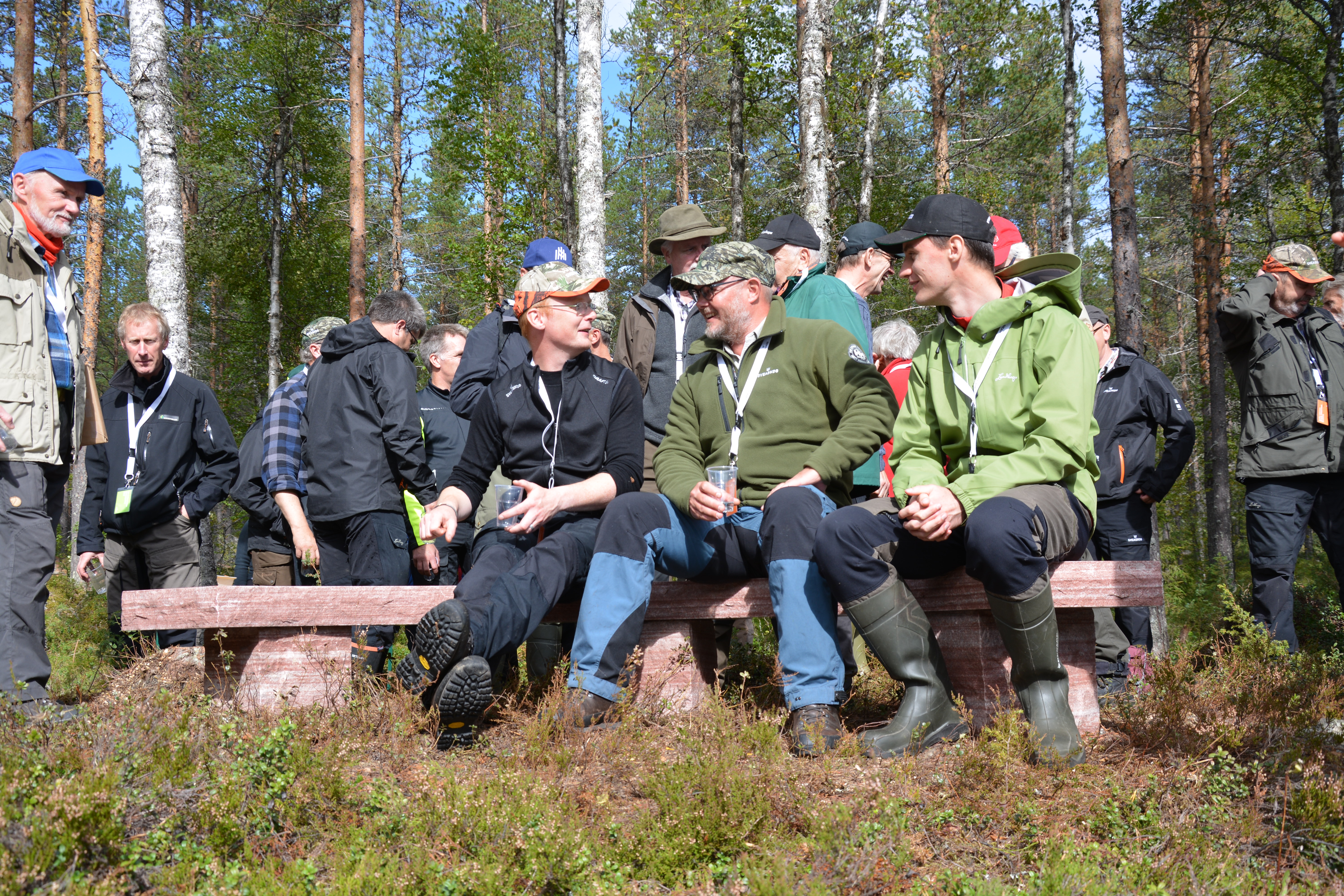 - Beskrivning: Invigning av Ekopark Fjätälven, provsittning av stenbänken