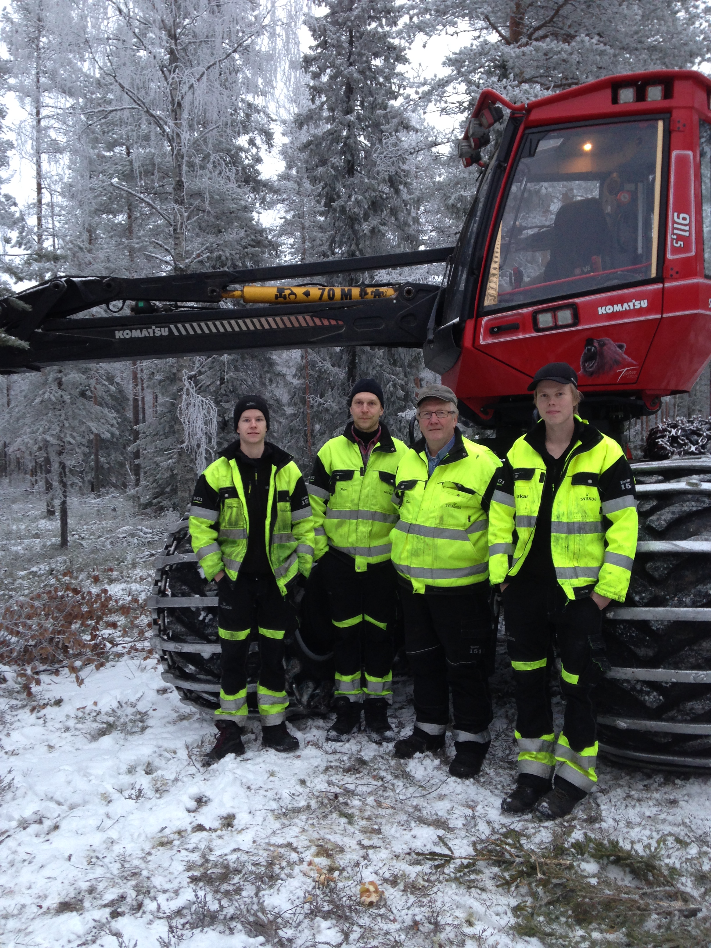 - Beskrivning: Från vänster Mattias Ahlbäck, Peter Älgamo, Sture Larsson och Oskar Grahn. Avverkningslag 1511, maskinförare