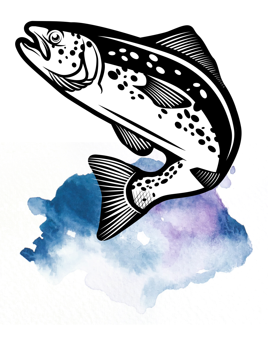 - Beskrivning: Fiskepärlor i Sveaskog vatten, vattenfärg, illustration, teckning, fisk som hoppas, tecknad