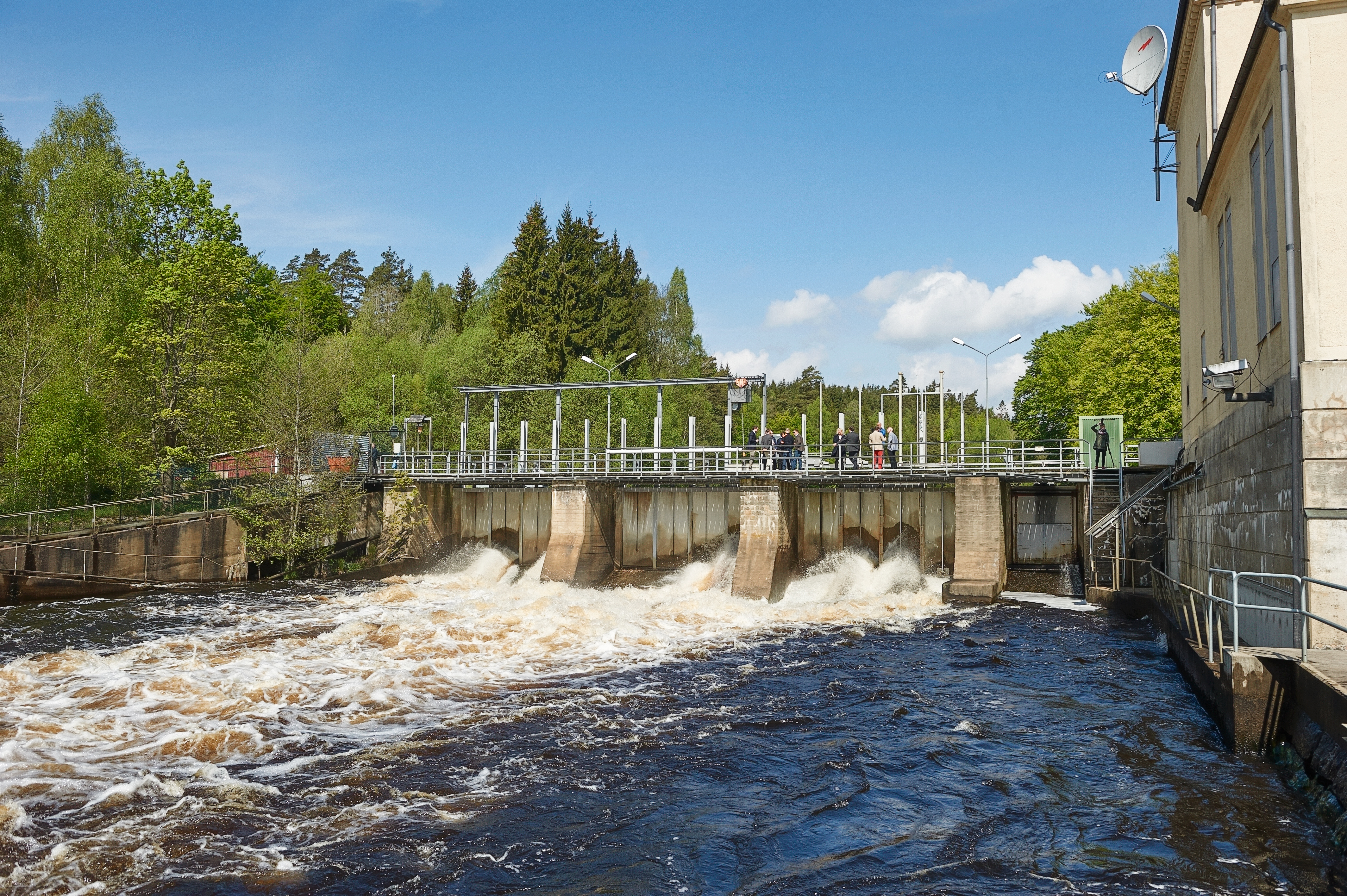 - Beskrivning: Presskonferens, pressmöte i Svängsta angående rivningen av Marieberg, damm, dammbyggnad