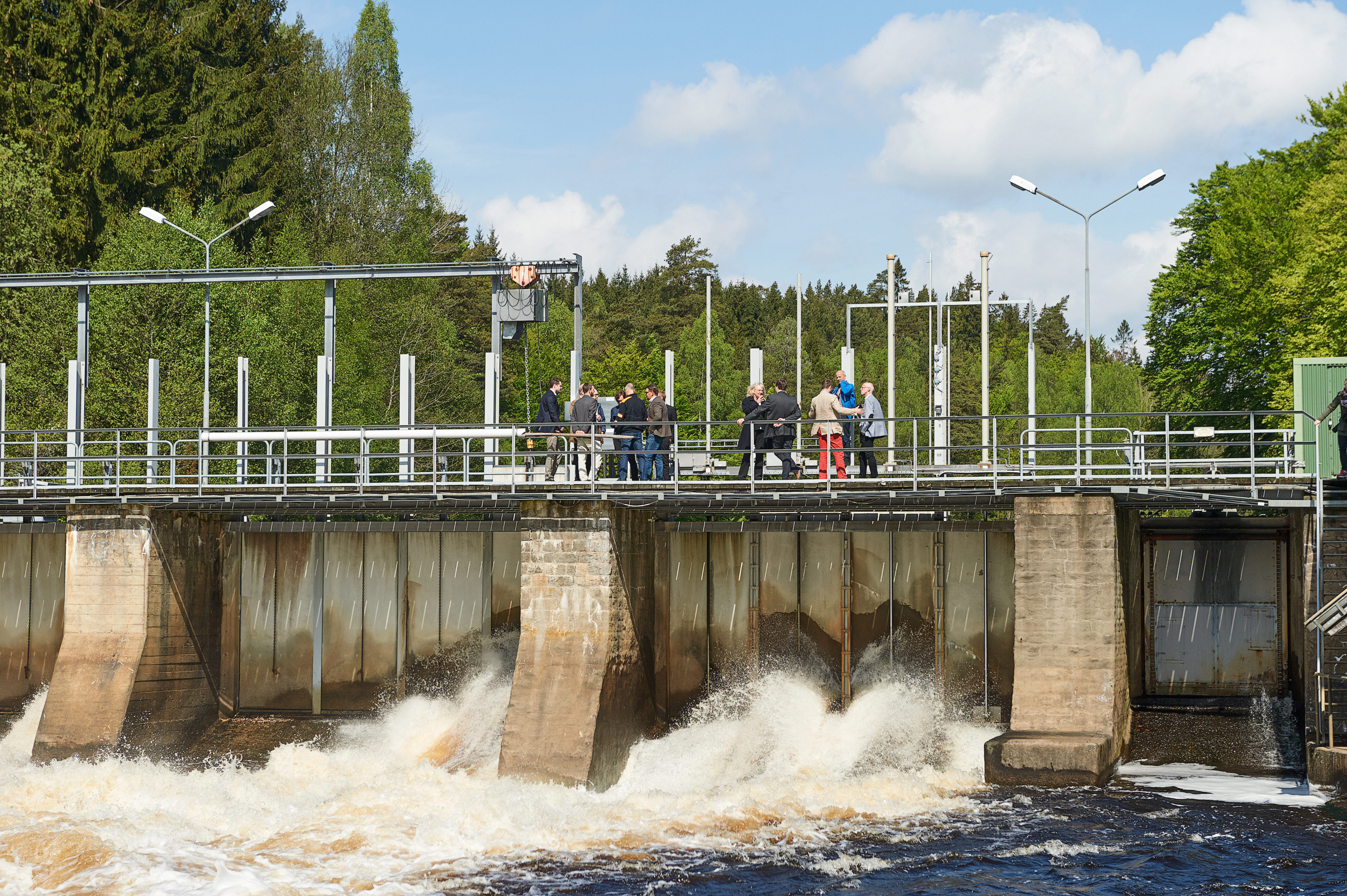 - Beskrivning: Presskonferens, pressmöte i Svängsta angående rivningen av Marieberg, damm, dammbyggnad