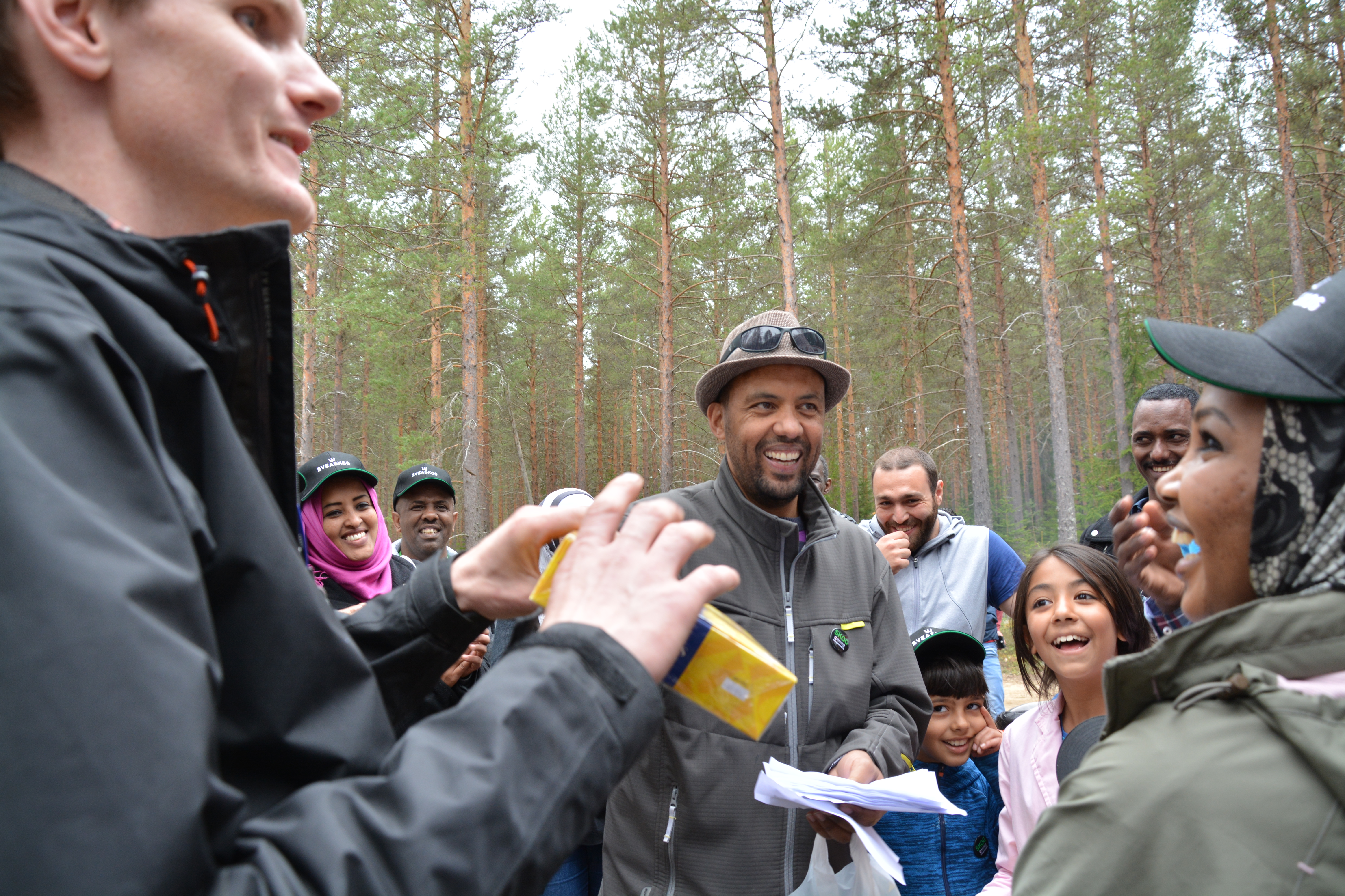 - Beskrivning: Mostafa Touil från VIF, Skogsdag för nysvenskar i Södra Norrland i samarbete med Linnéuniversitetet och VIF, Vänskap och Integrationsföreningen