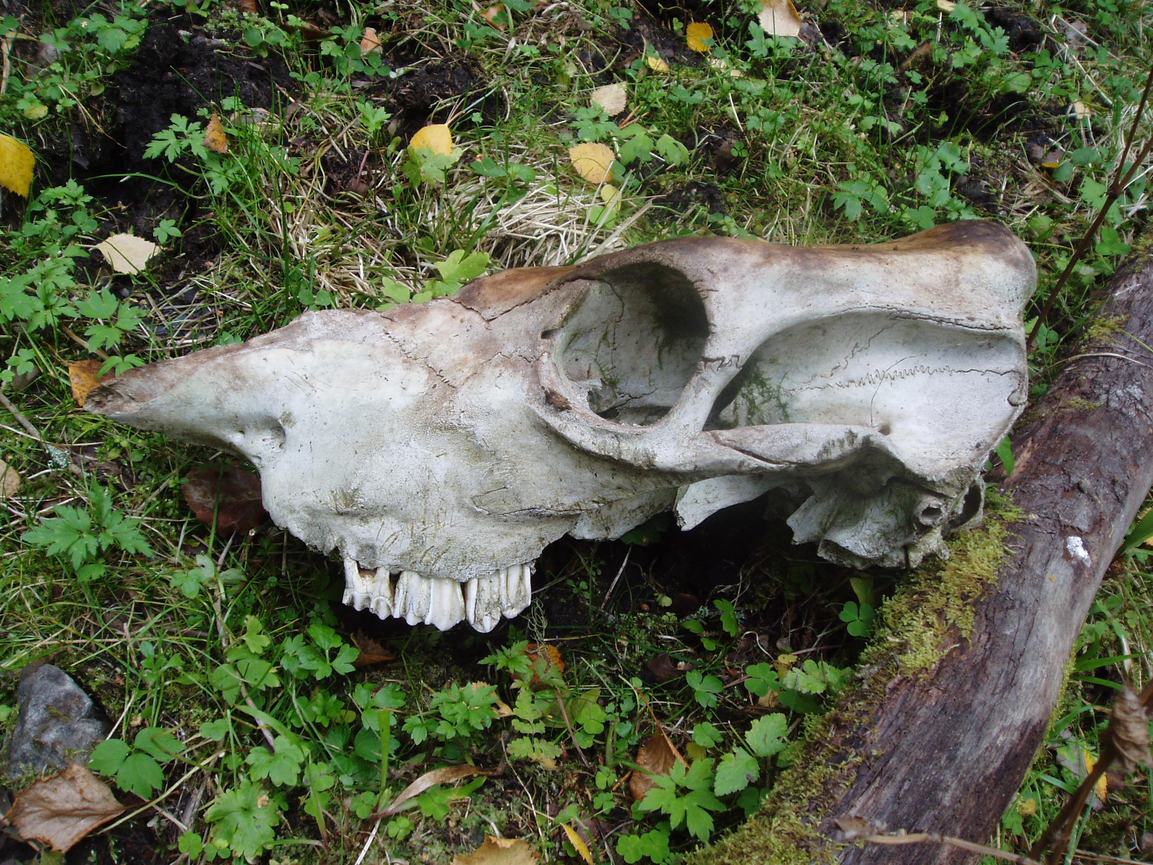 - Beskrivning: Kranium av ko i Ekopark Rosfors