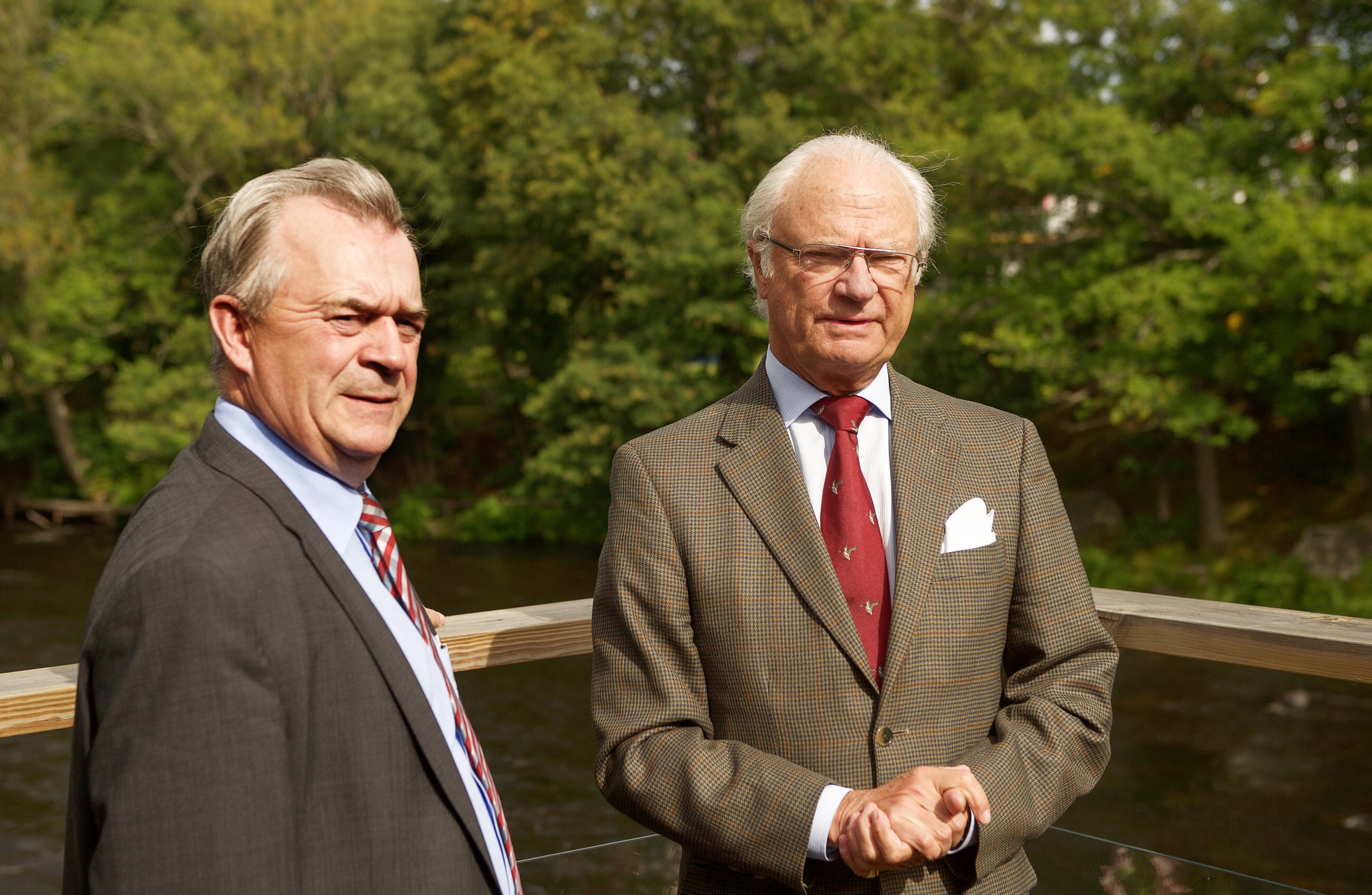 - Beskrivning: Sven-Eric Bucht och Kung Carl XVI Gustaf, Sveaskogs seminarium "Laxfiskets potential för tillväxt i Sverige"