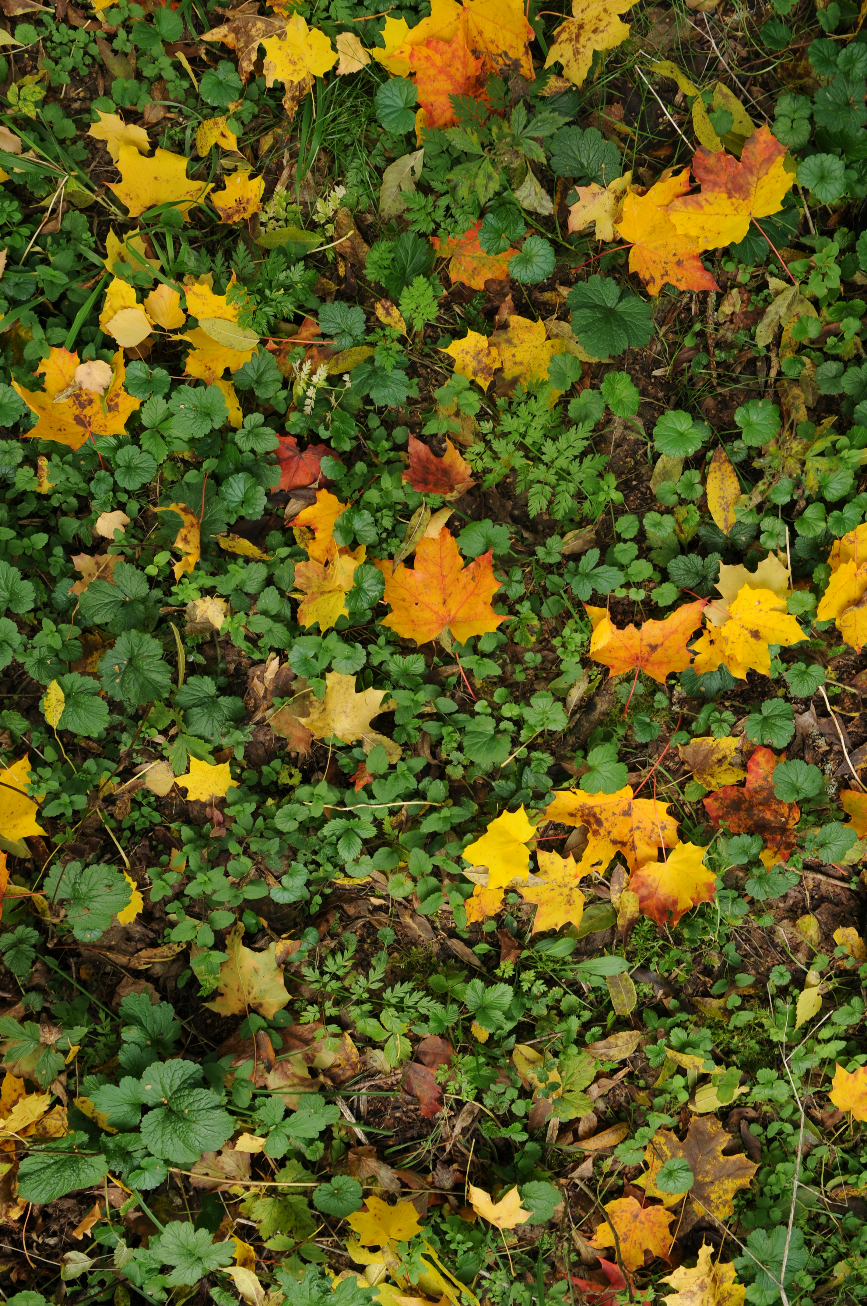 - Beskrivning: Höstlöv av lönn på marken, Ekopark Ridö Sundbyholmarkipelagen