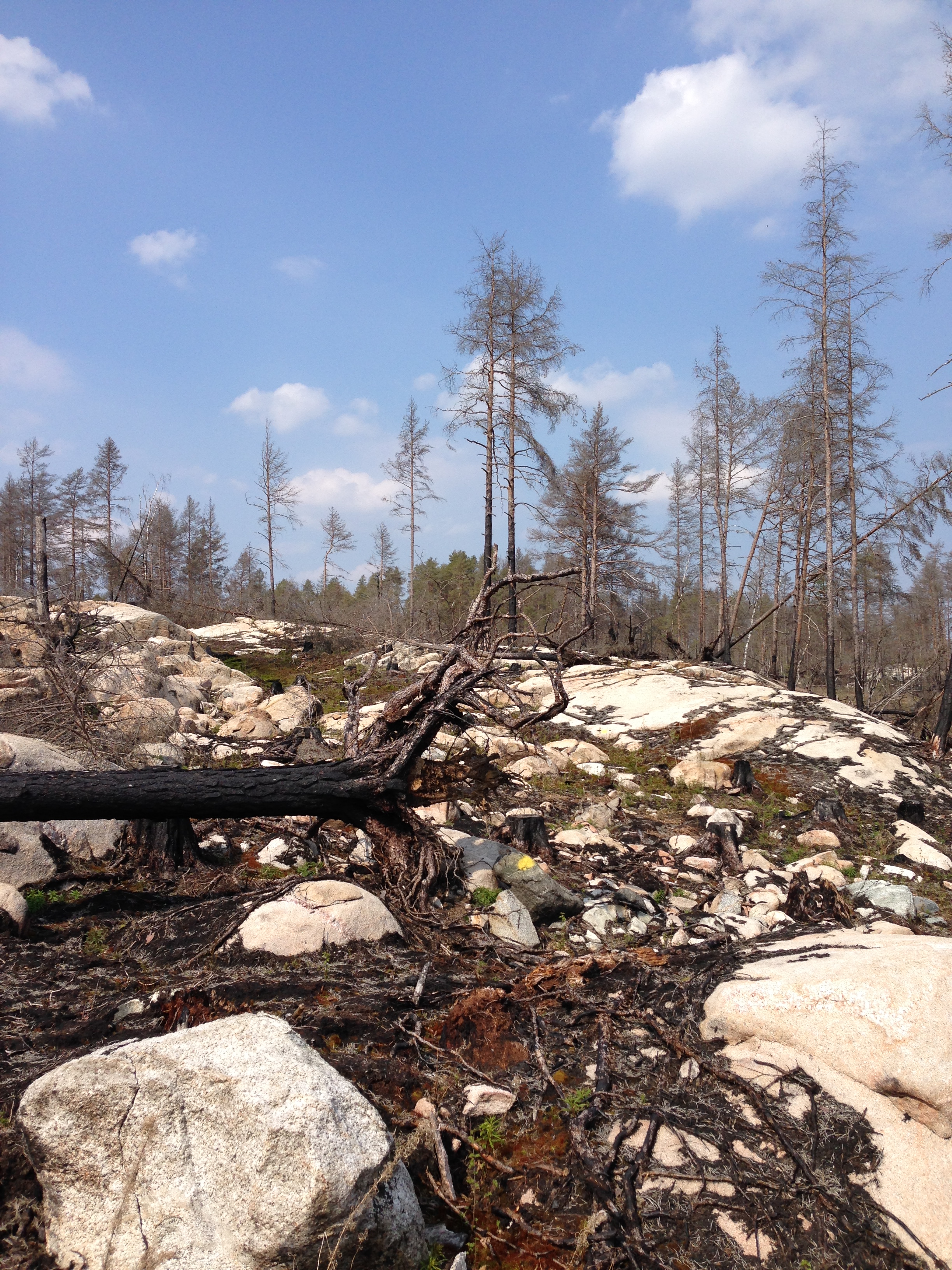 - Beskrivning: Ekopark Öjesjöbrännan, efter bränning, skogsbrand, kol