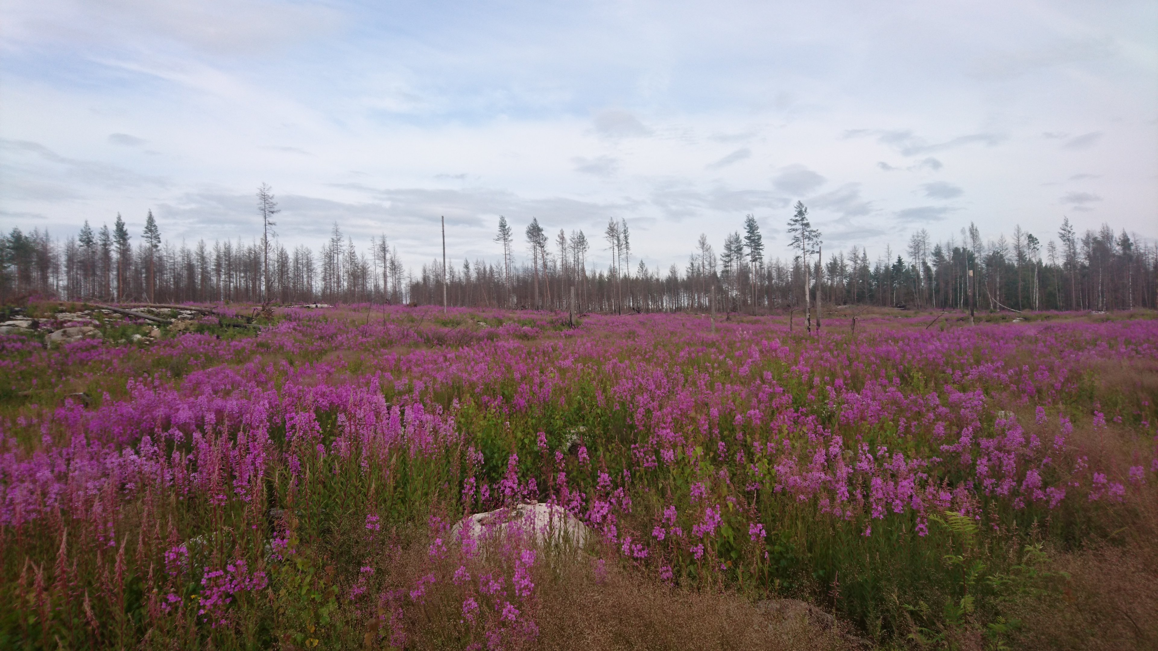 - Beskrivning: Mjölke, mölkört, blommor, dunörtsväxter, äng, rosa äng, Rallaros, Ekopark Öjesjöbrännan, liv efter brand, växtlighet, liv, pånyttfödelse