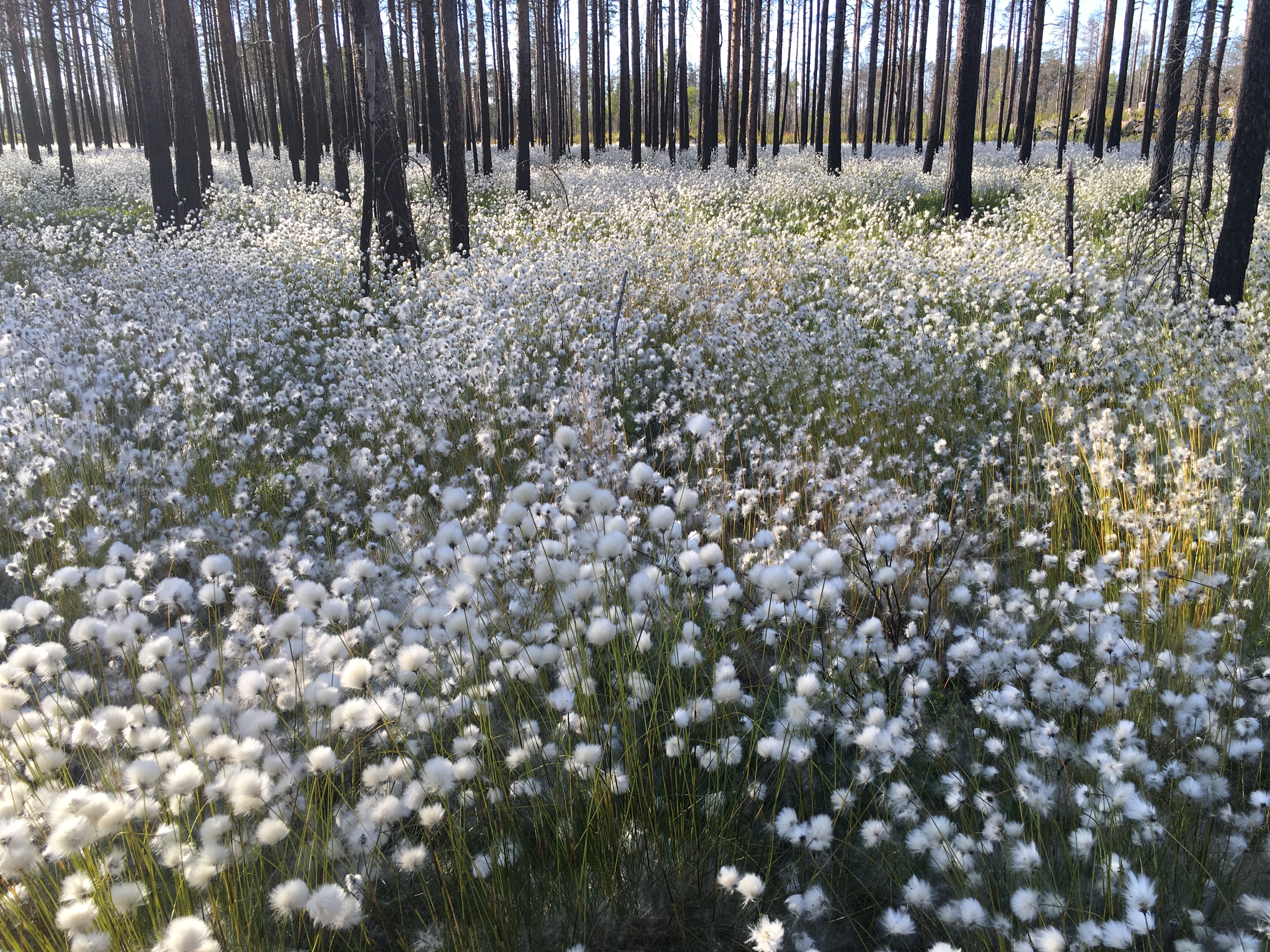 • Beskrivning: Tuvull, hadd, myrdun, toböder, halvgräs, äng, Ekopark Öjesjöbrännan, liv efter brand, växtlighet, liv, pånyttfödelse