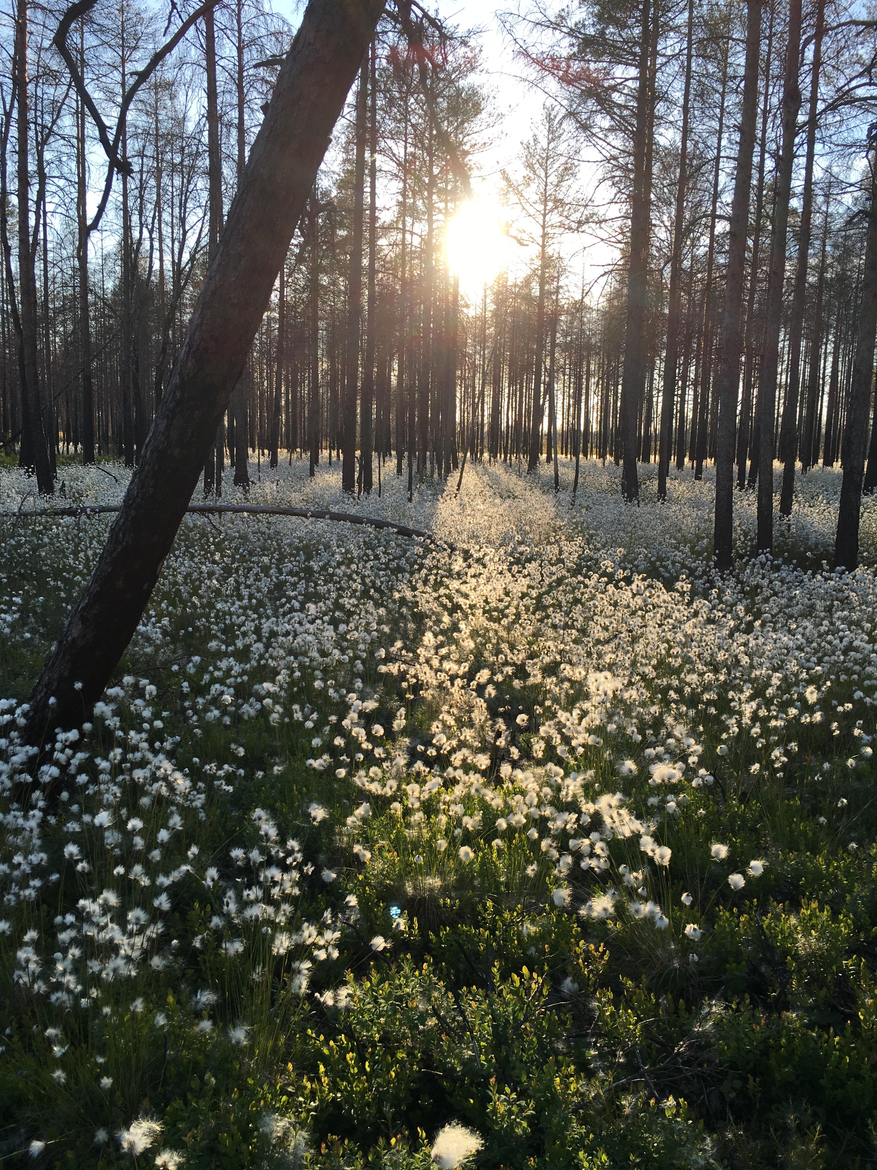 - Beskrivning: Tuvull, hadd, myrdun, toböder, halvgräs, äng, Ekopark Öjesjöbrännan, liv efter brand, växtlighet, liv, pånyttfödelse