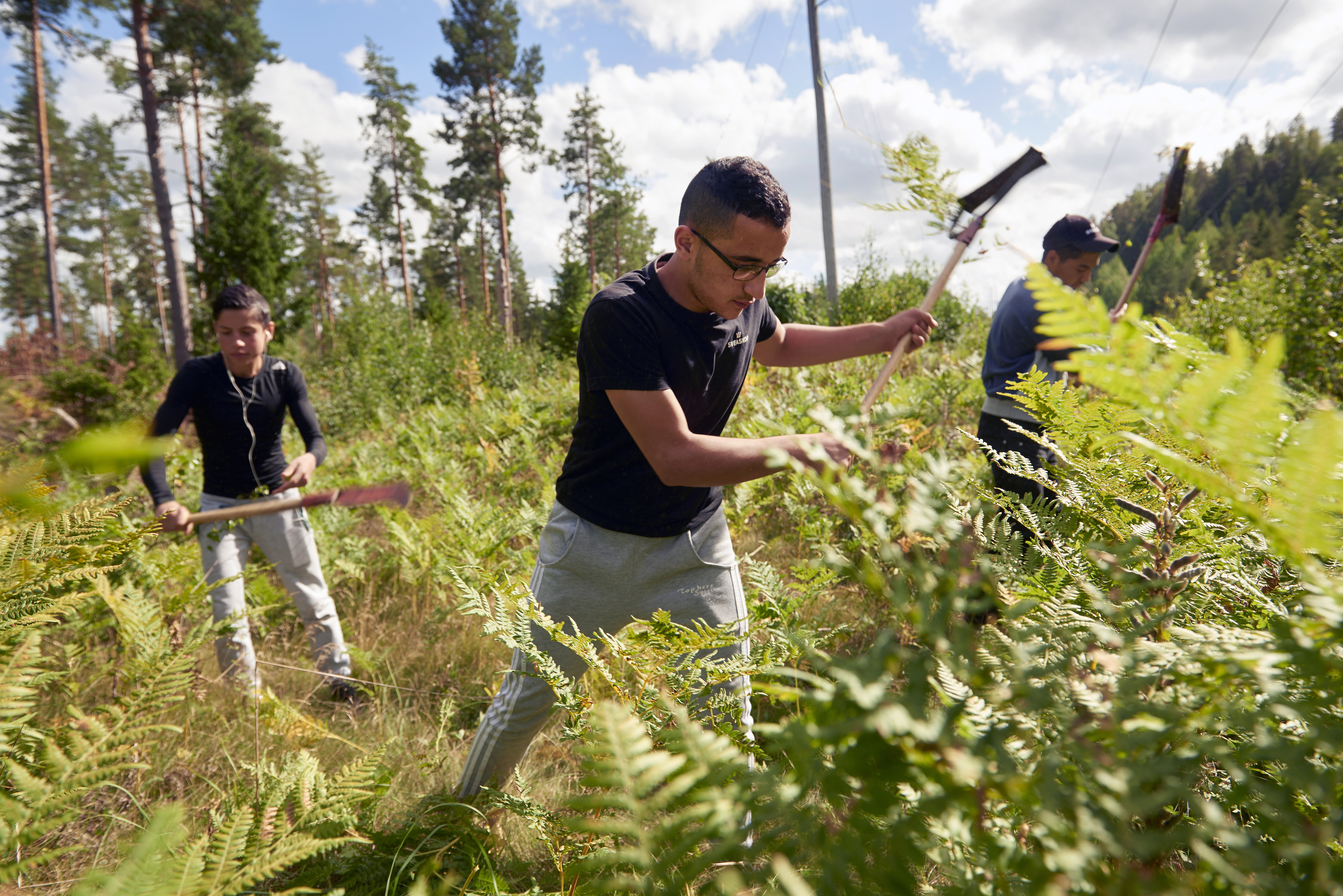 - Beskrivning: Abdelkarem Baker, sommarjobbare, Under uppsyn av skogsvårdare Bo Johansson har 12 sommarjobbare jobbat med huvudsakligen markberedning och avverkning. Insatsen är en del av Sveaskogs integrationsprojekt Växtkraft!