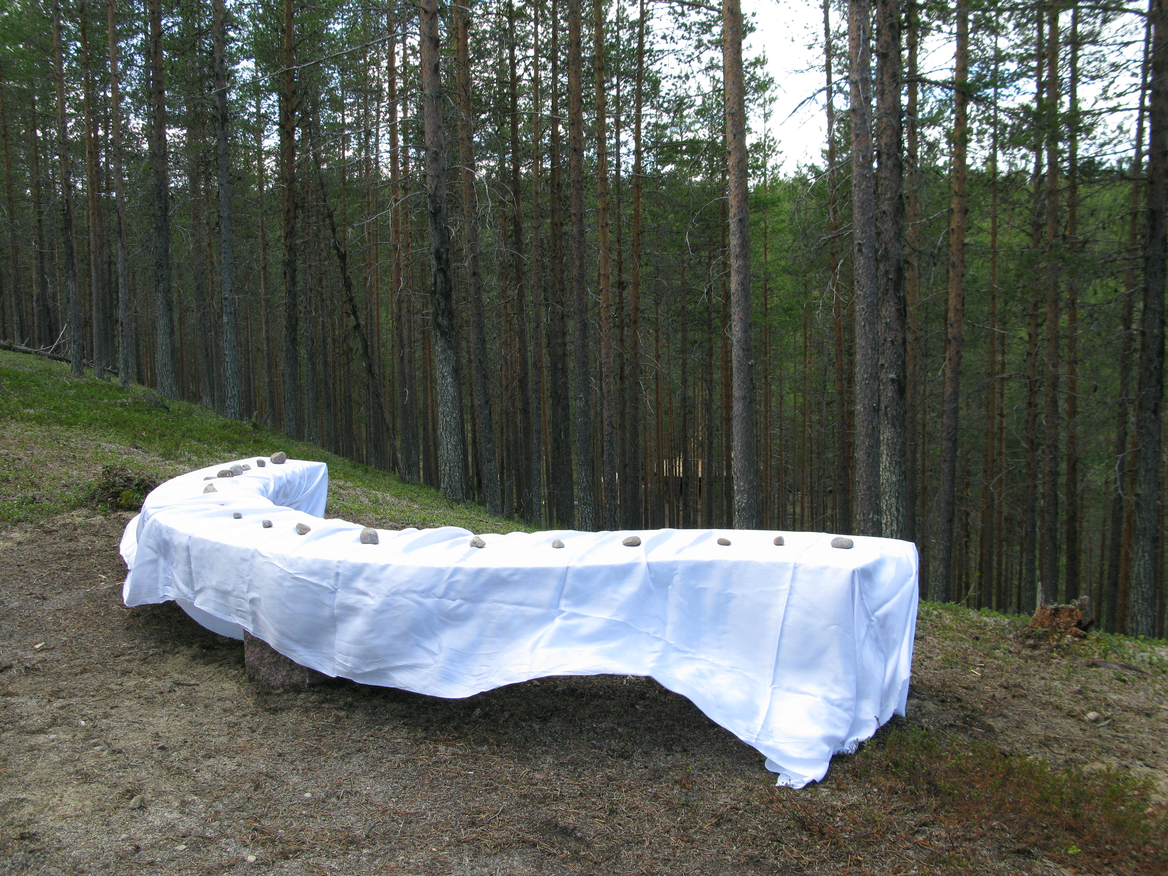 - Beskrivning: Oinvigd stenbänk i Ekopark Skatan