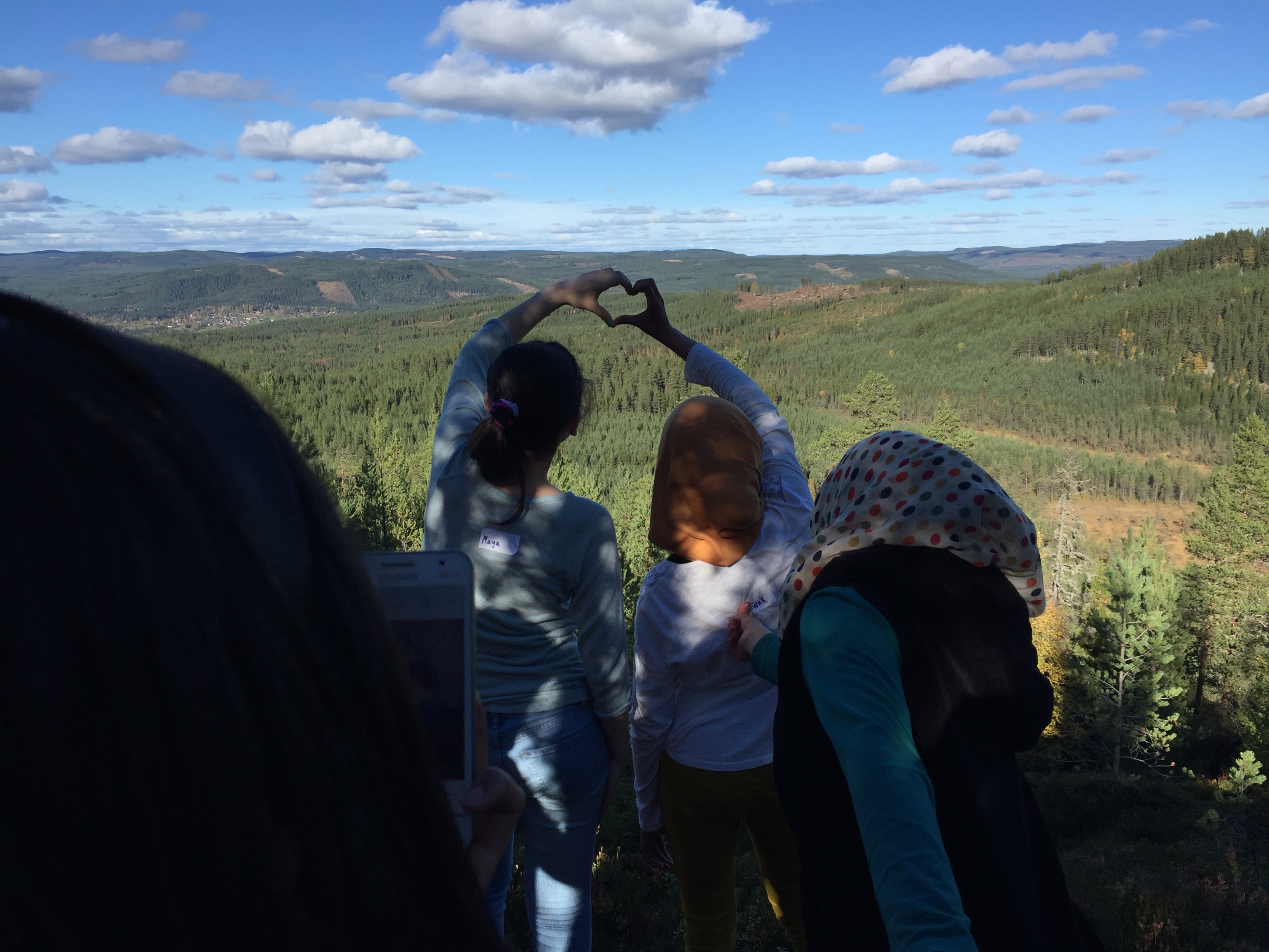 - Beskrivning: Besök i skogen, bästa vänner, hjärta med händerna, kärlek, Integrationskollo, kollo, genom samverkansprogrammet Skogen i Skolan, utbildning, elever, flickor, tjejer, öka intresse för skolen