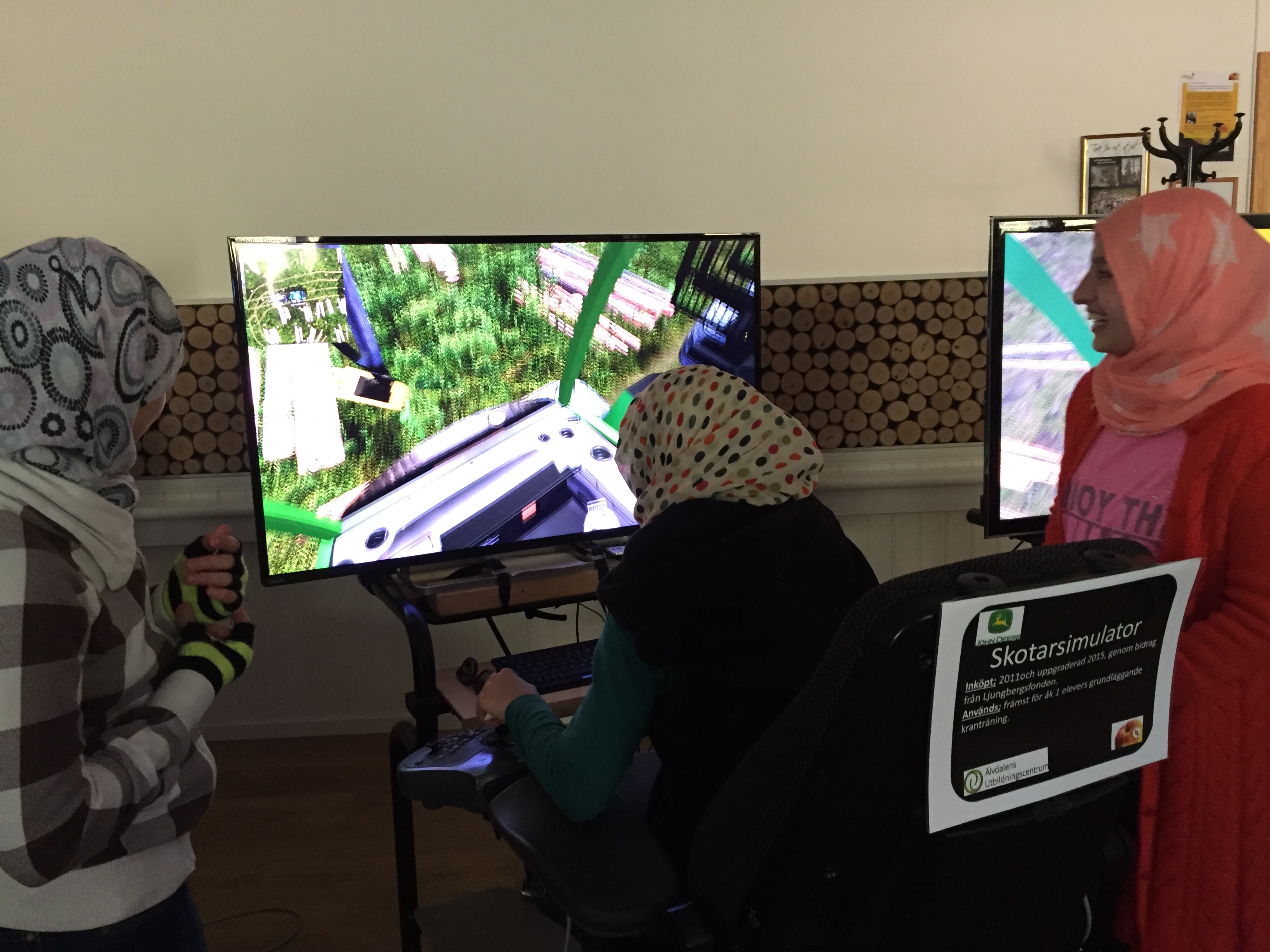 • Beskrivning: Simulation, avverkning, dator, teknik, Integrationskollo, kollo, genom samverkansprogrammet Skogen i Skolan, utbildning, elever, flickor, tjejer, öka intresse för skolen
