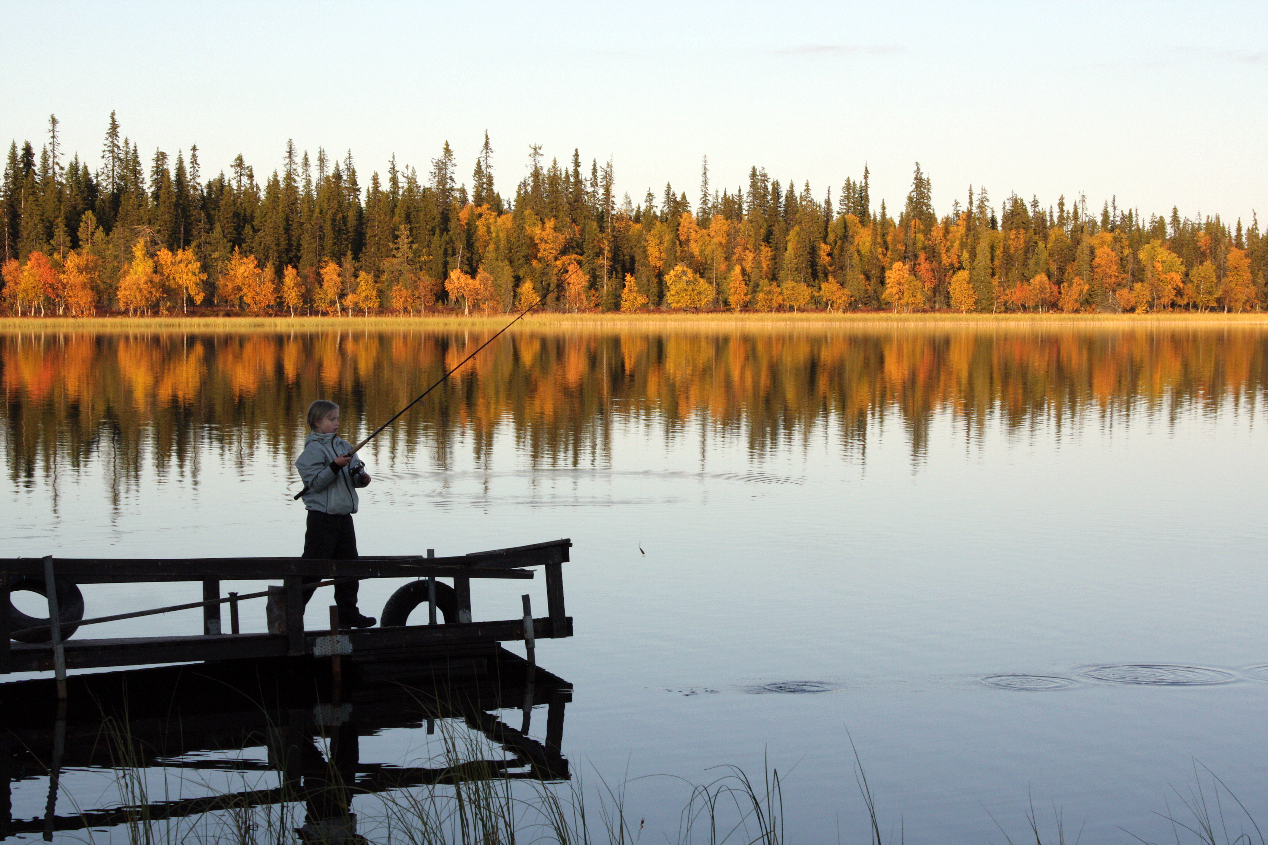 - Beskrivning: Ekopark Naakajärvi, fiskare på brygga vid sjön Naakajärvi