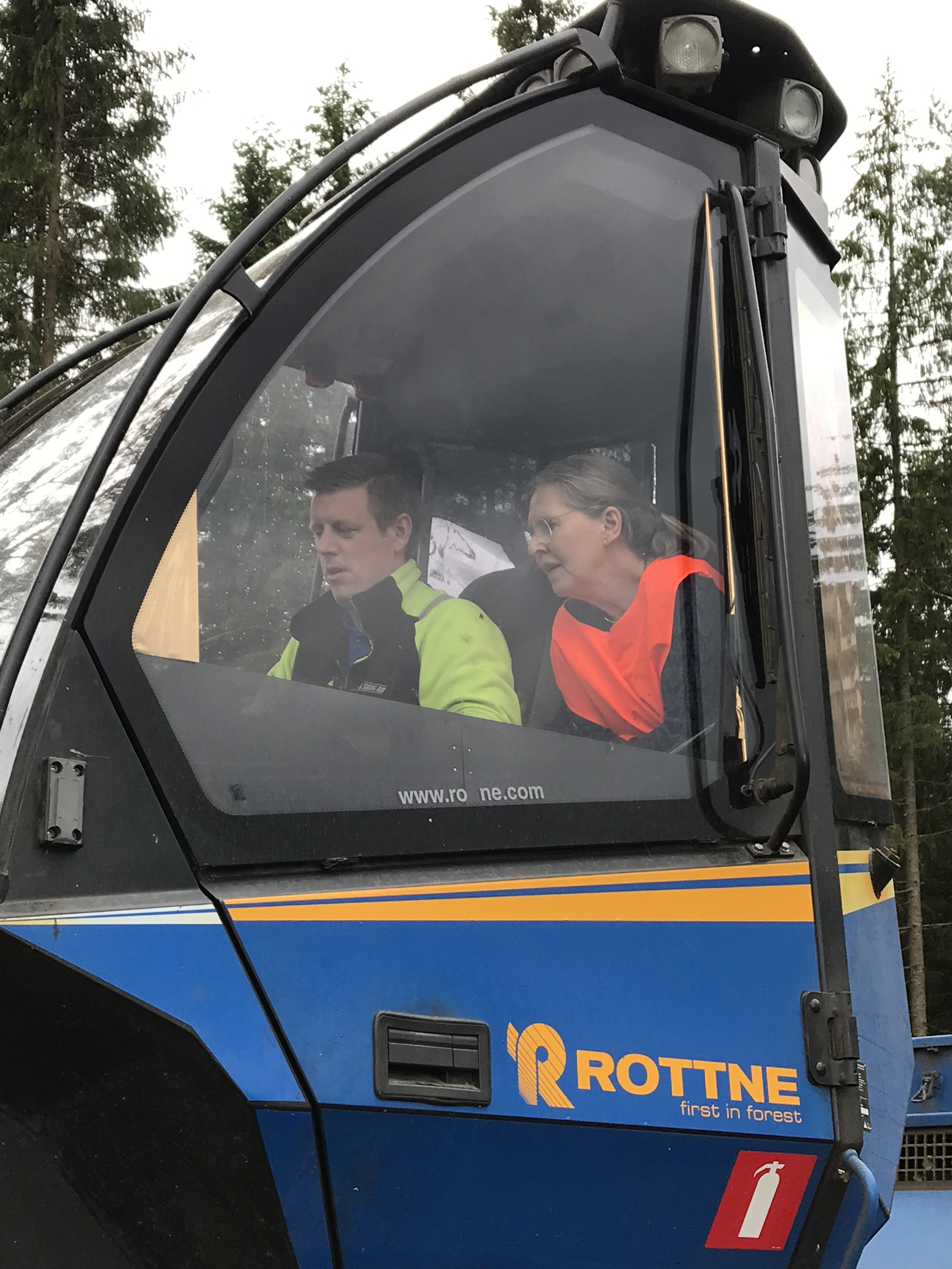 Eva Färnstrand på tur i skördaren med Tobias Blomqvist