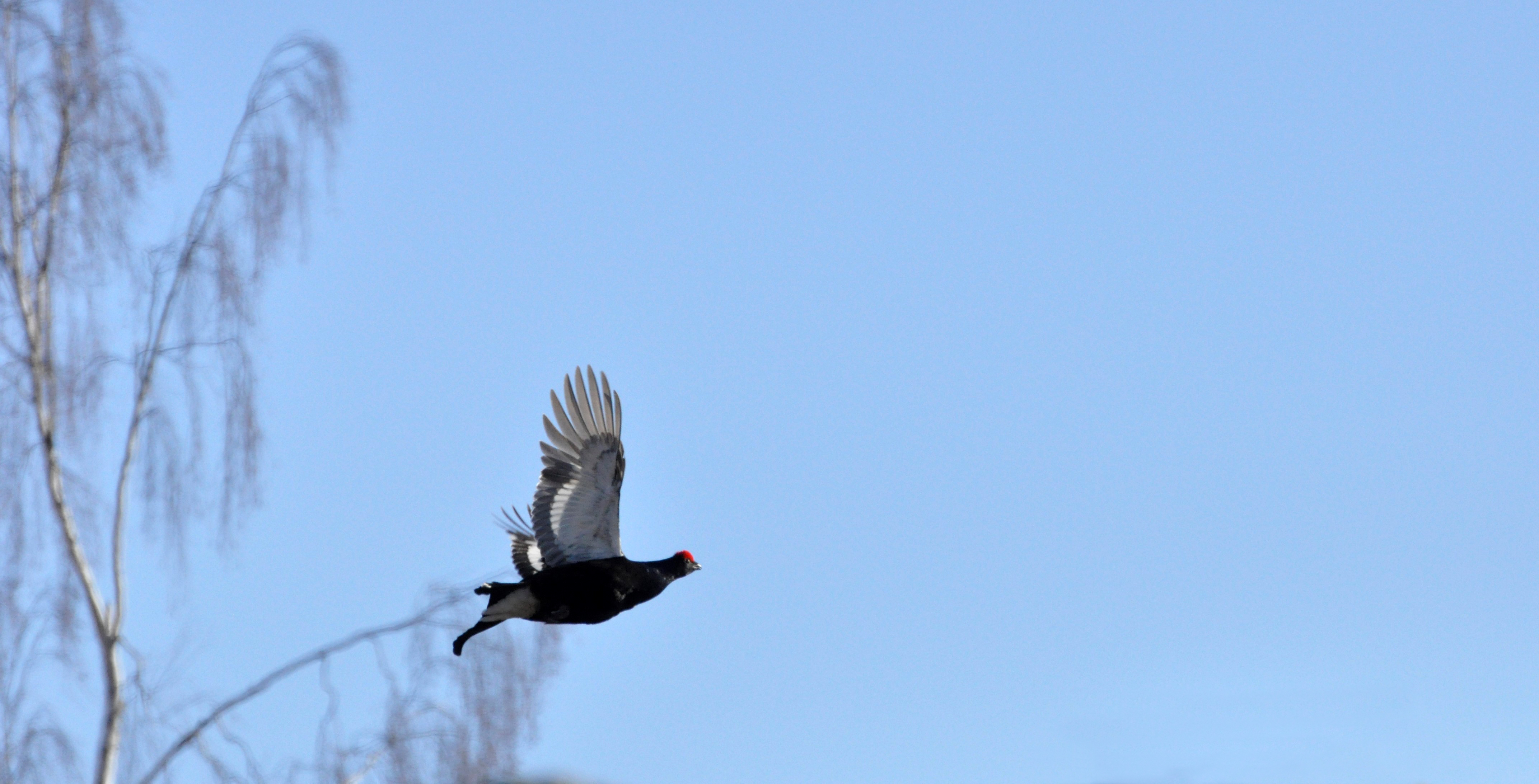 - Beskrivning: Orre, orrtupp, flyger, skogsfågel