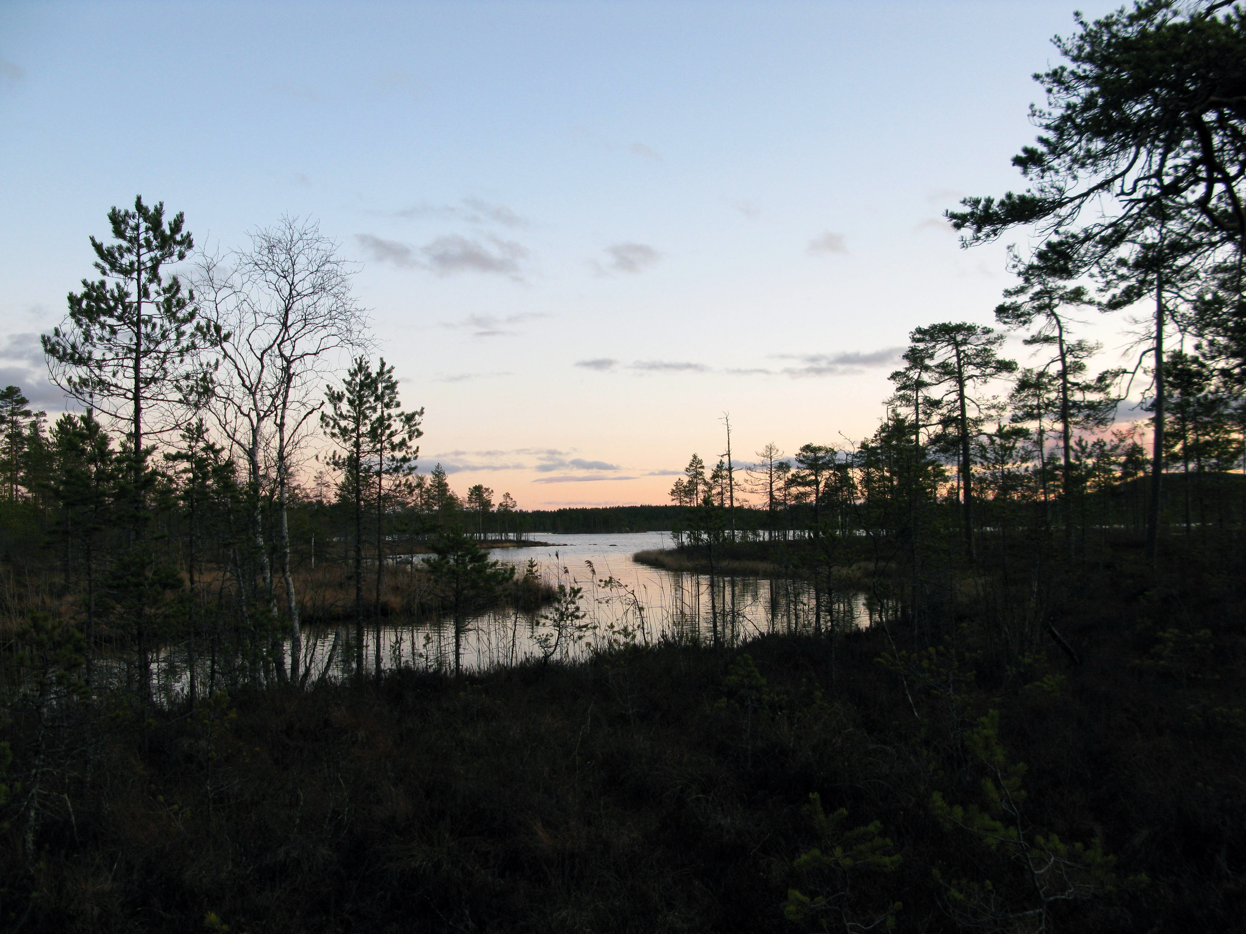 - Beskrivning: Vattendrag med rosa himmel i skymning. Ekopark Ejheden