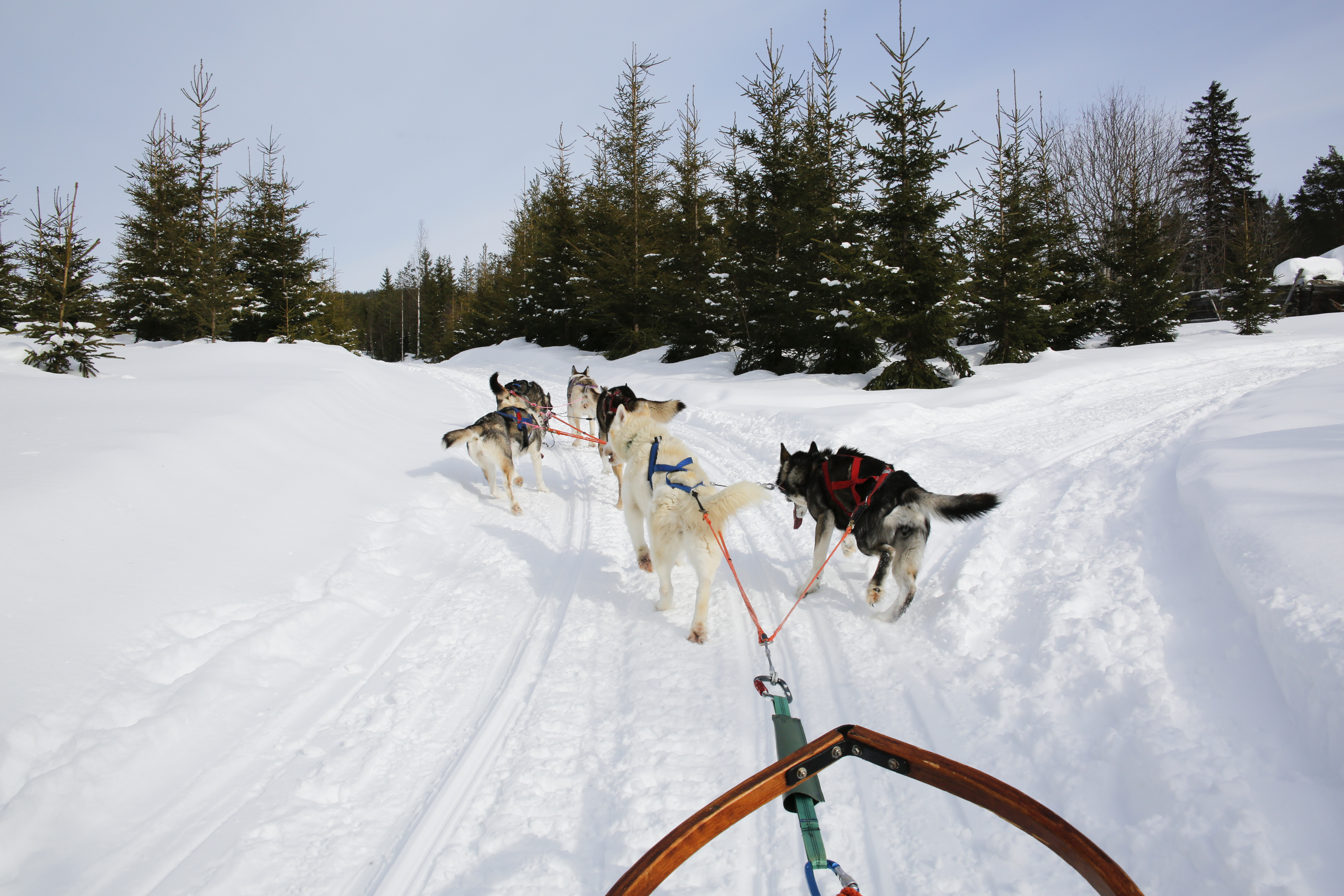 - Beskrivning: Juliane trivs med att köra i det öppna landskapet. Att använda det kommersiella skogsbrukets marker passar därför utmärkt eftersom det ständigt finns huggna marker att köra igenom. Skräcken att möta en skotare på vägen är ständigt närvarande. Därför för hon noggranna samtal med markägare så att båda parter vet var den andre gör, Juliane Nicklass driver Spruce Island Husky, hundspannsekipage, naturturismbild, naturturism, hundspann, hundspannsföretag, Juliane Husky Walk , Huskyhun, Granö Bäckasin