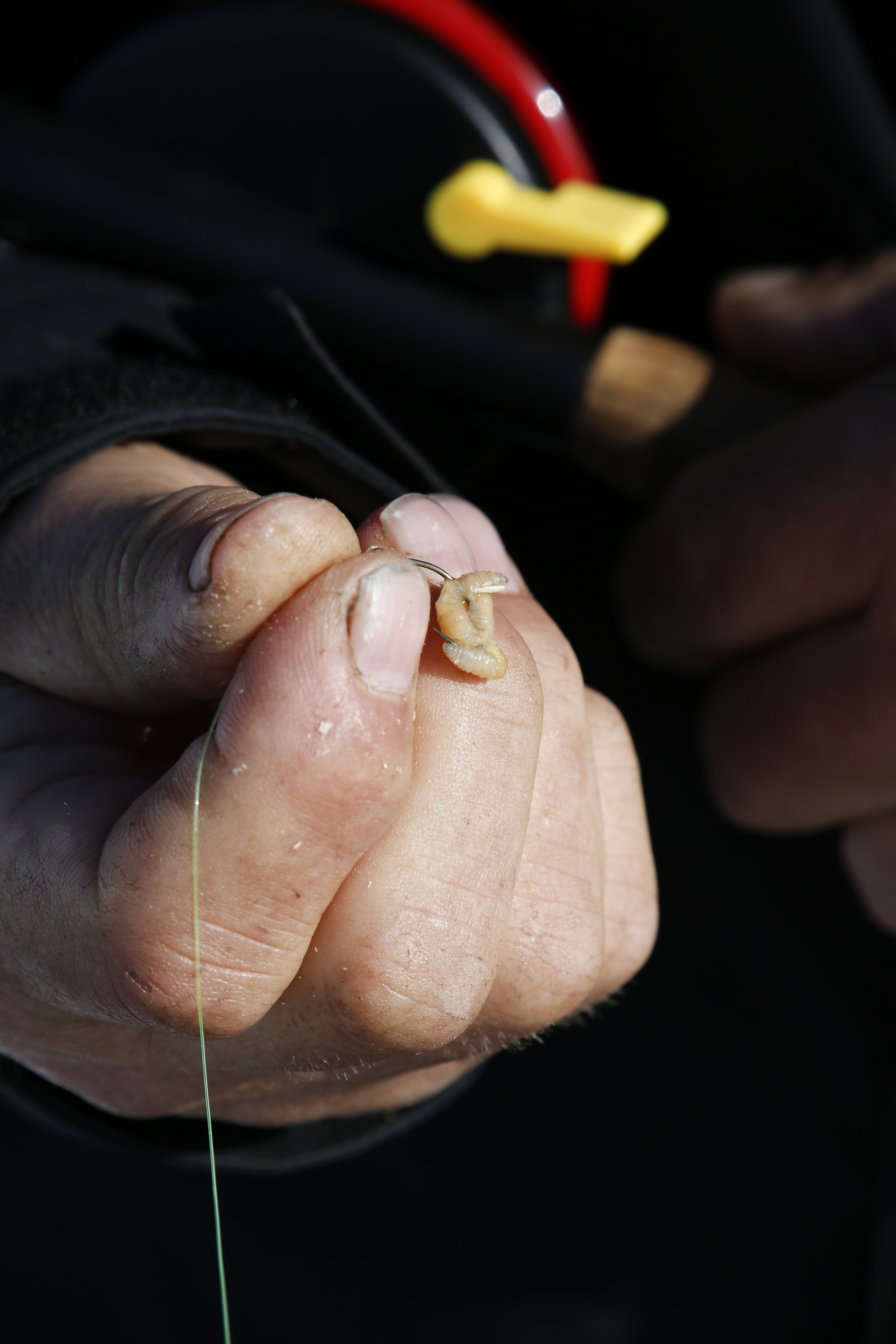 • Titel: Hand som håller maggotbete